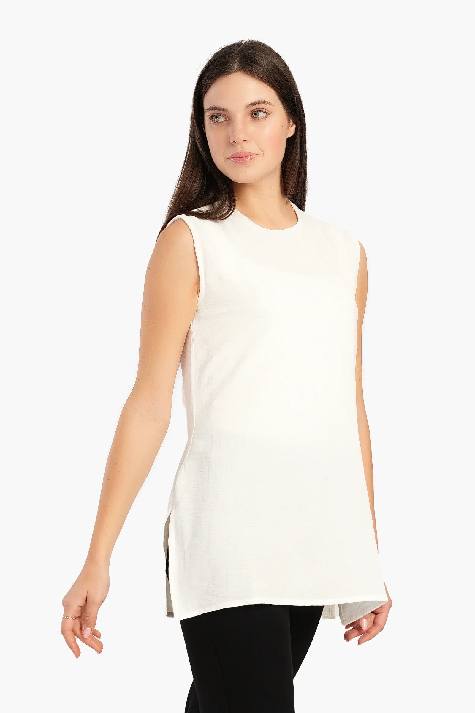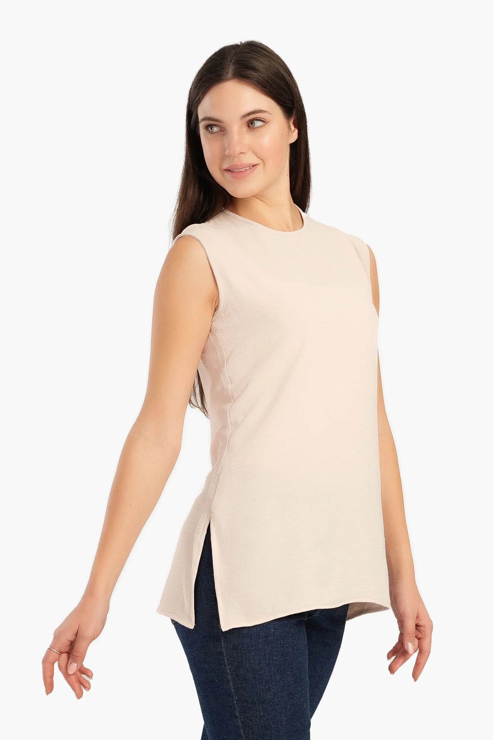 هذه البلوزة بدون أكمام هي مثالٌ للأناقة والراحة. مصممة بنقشة سادة وقصة عادية، لتقدم تصميمًا أنيقًا ومتعدد الاستخدامات، مناسبًا لأي مناسبة. تضفي رقبة الياقة المستديرة لمسةً كلاسيكية، بينما توفر الشقوق الجانبية سهولة الحركة ولمسة من الأناقة العصرية. تصميمها سهل الارتداء يجعلها قطعةً سهلة الارتداء، تنسجم بسلاسة مع أي خزانة ملابس.