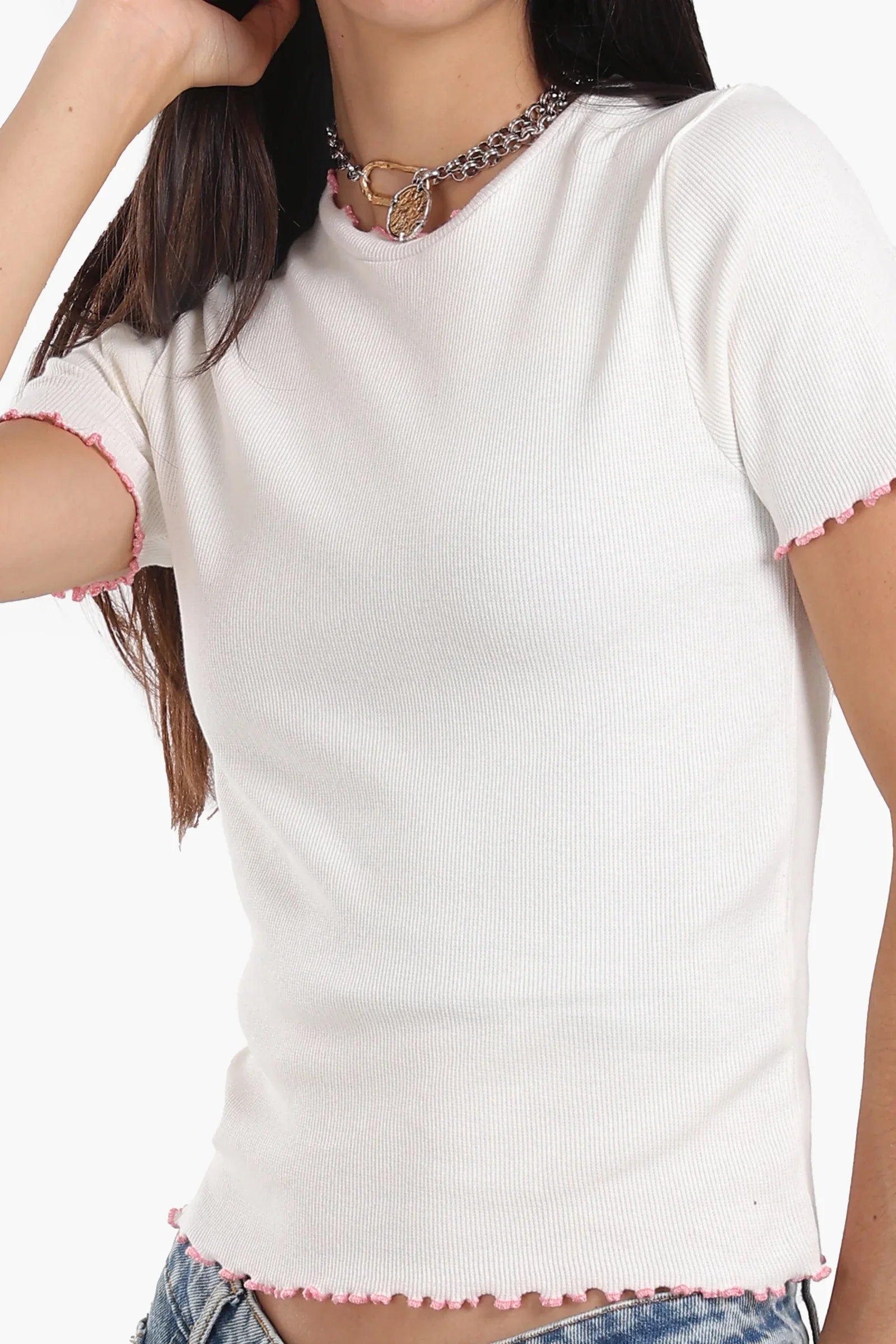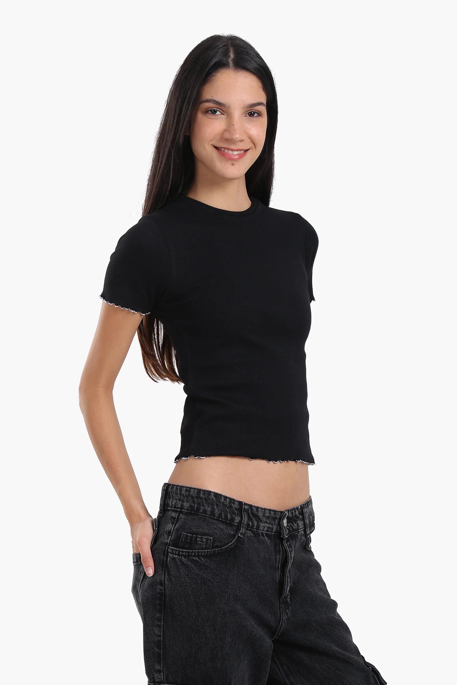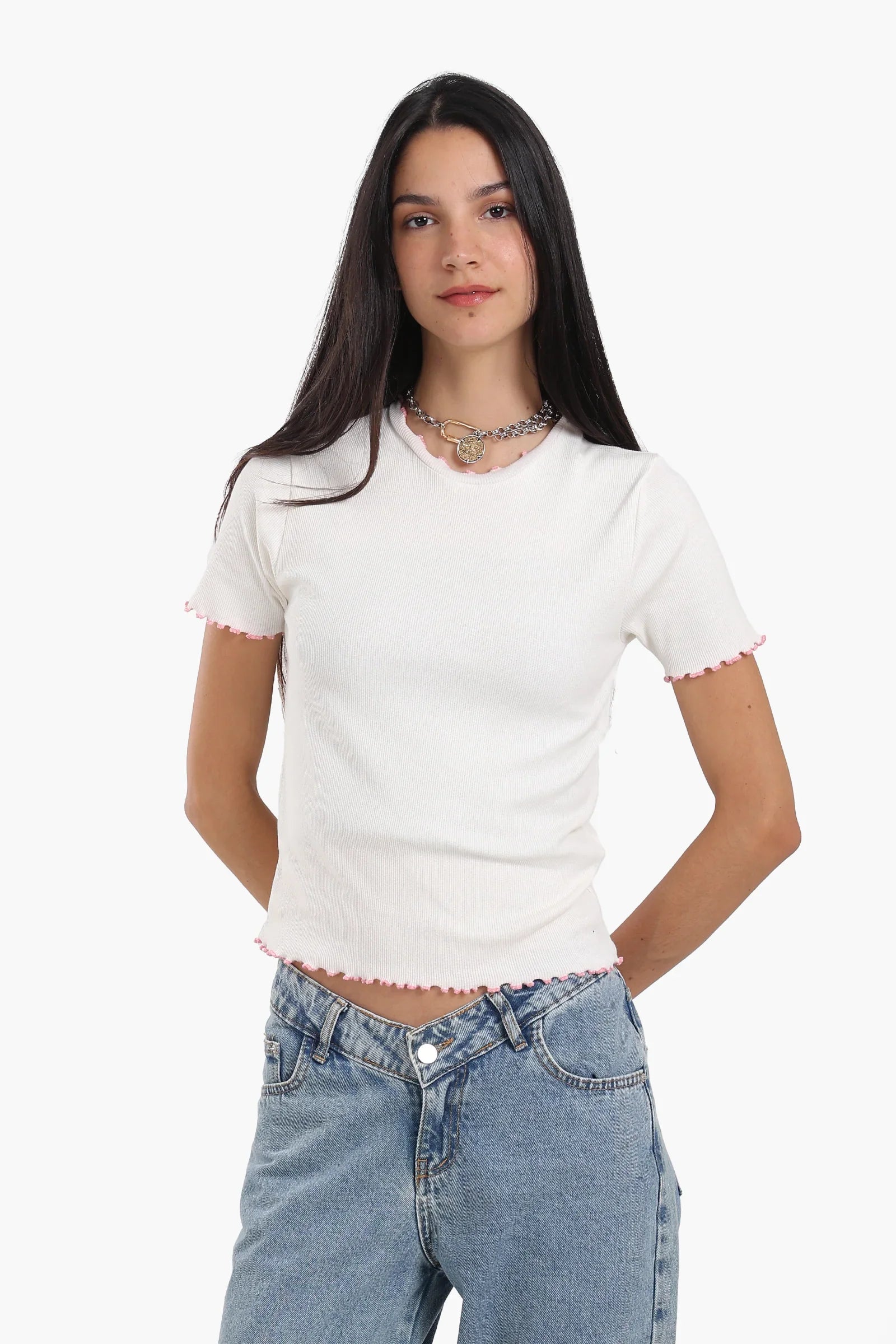أضيفي لمسة من الأناقة إلى خزانة ملابسكِ اليومية مع هذه البلوزة القطنية المضلعة، المصممة لراحة وأناقة لا مثيل لهما. مصنوعة من قطن ناعم يسمح بمرور الهواء، تتميز بقصة ضيقة جذابة تحتضن الجسم دون أن تشعري بضيق. يضيف التصميم المضلع ملمسًا ناعمًا ومرونةً، بينما تحافظ الياقة المستديرة والأكمام القصيرة على طابعها الكلاسيكي. ما يميز هذه البلوزة هو حاشية الكشكشة غير المكتملة، مما يضفي عليها لمسة أنثوية مرحة. مصممة بنمط سهل الارتداء، وهي مثالية للارتداء بسهولة ويسر.