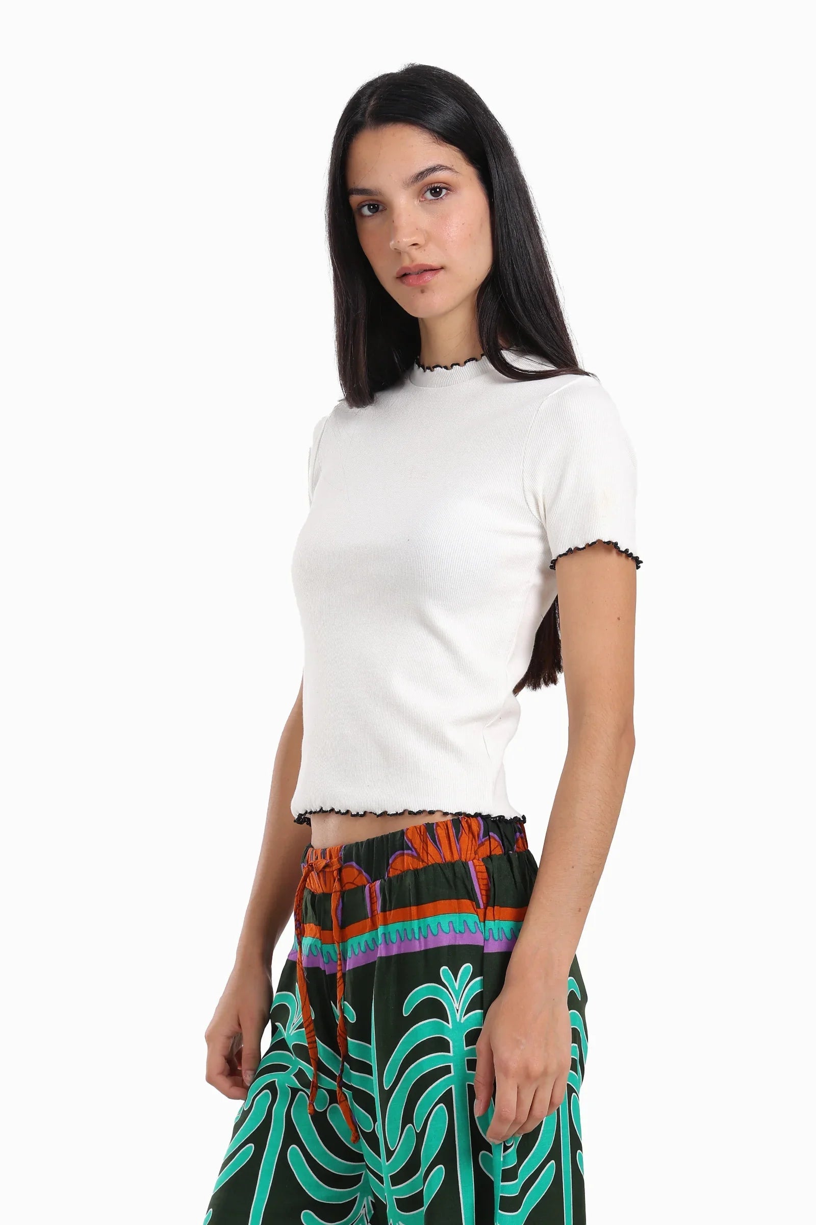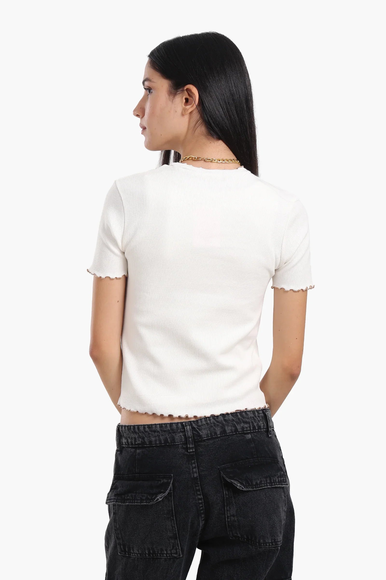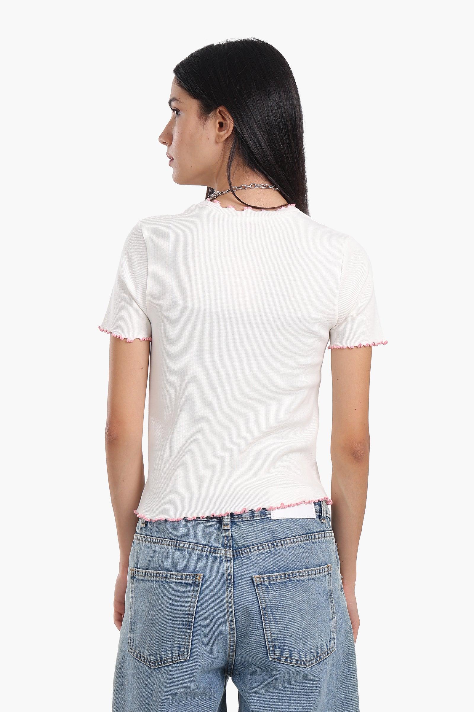 أضيفي لمسة من الأناقة إلى خزانة ملابسكِ اليومية مع هذه البلوزة القطنية المضلعة، المصممة لراحة وأناقة لا مثيل لهما. مصنوعة من قطن ناعم يسمح بمرور الهواء، تتميز بقصة ضيقة جذابة تحتضن الجسم دون أن تشعري بضيق. يضيف التصميم المضلع ملمسًا ناعمًا ومرونةً، بينما تحافظ الياقة المستديرة والأكمام القصيرة على طابعها الكلاسيكي. ما يميز هذه البلوزة هو حاشية الكشكشة غير المكتملة، مما يضفي عليها لمسة أنثوية مرحة. مصممة بنمط سهل الارتداء، وهي مثالية للارتداء بسهولة ويسر.