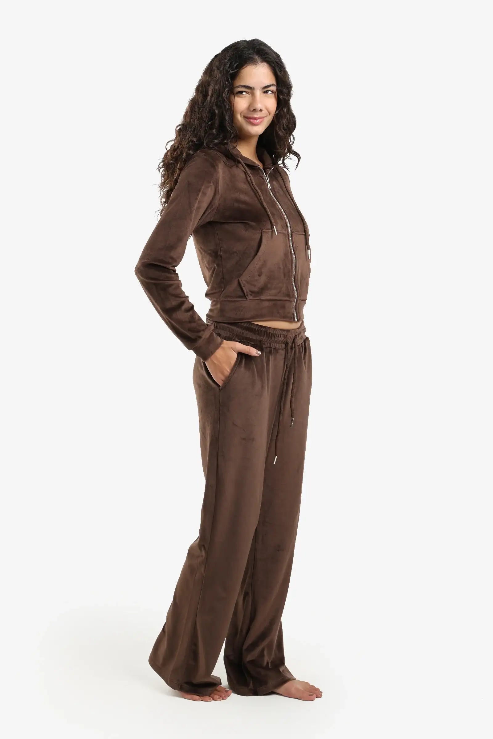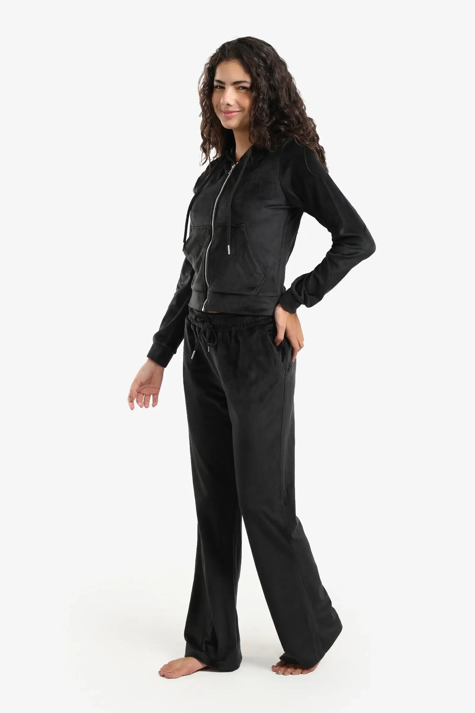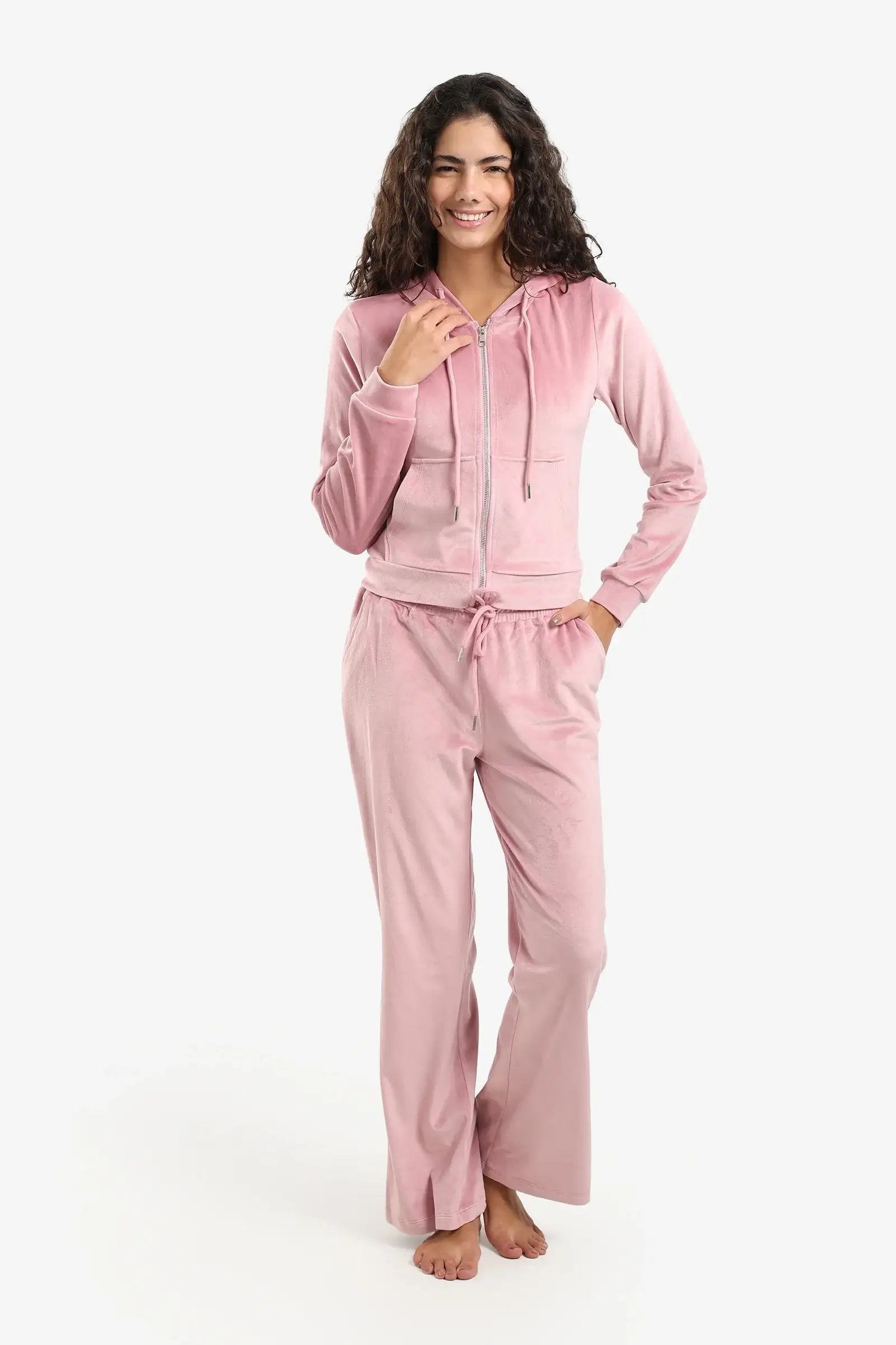 استمتعي براحة فائقة وأناقة لا مثيل لها مع طقم بيجاما مخملي فاخر، مصمم ليمنحكِ الراحة والأناقة في آنٍ واحد. مصنوع من مخمل ناعم فاخر، يتميز بقصّة عادية تضمن لكِ سهولة الحركة وراحة طوال اليوم. يُضفي الجزء العلوي ذو القلنسوة والسحاب والجيوب الأمامية لمسةً رياضيةً مريحة، بينما يضمن البنطال ذو الخصر المرن المزود برباط ملاءمةً مثالية وقابلة للتعديل. يأتي هذا الطقم بجيوب جانبية وتصميم كامل الطول، ويجمع بين العملية والأناقة، مثالي لأمسيات مريحة أو عطلة نهاية أسبوع أنيقة.