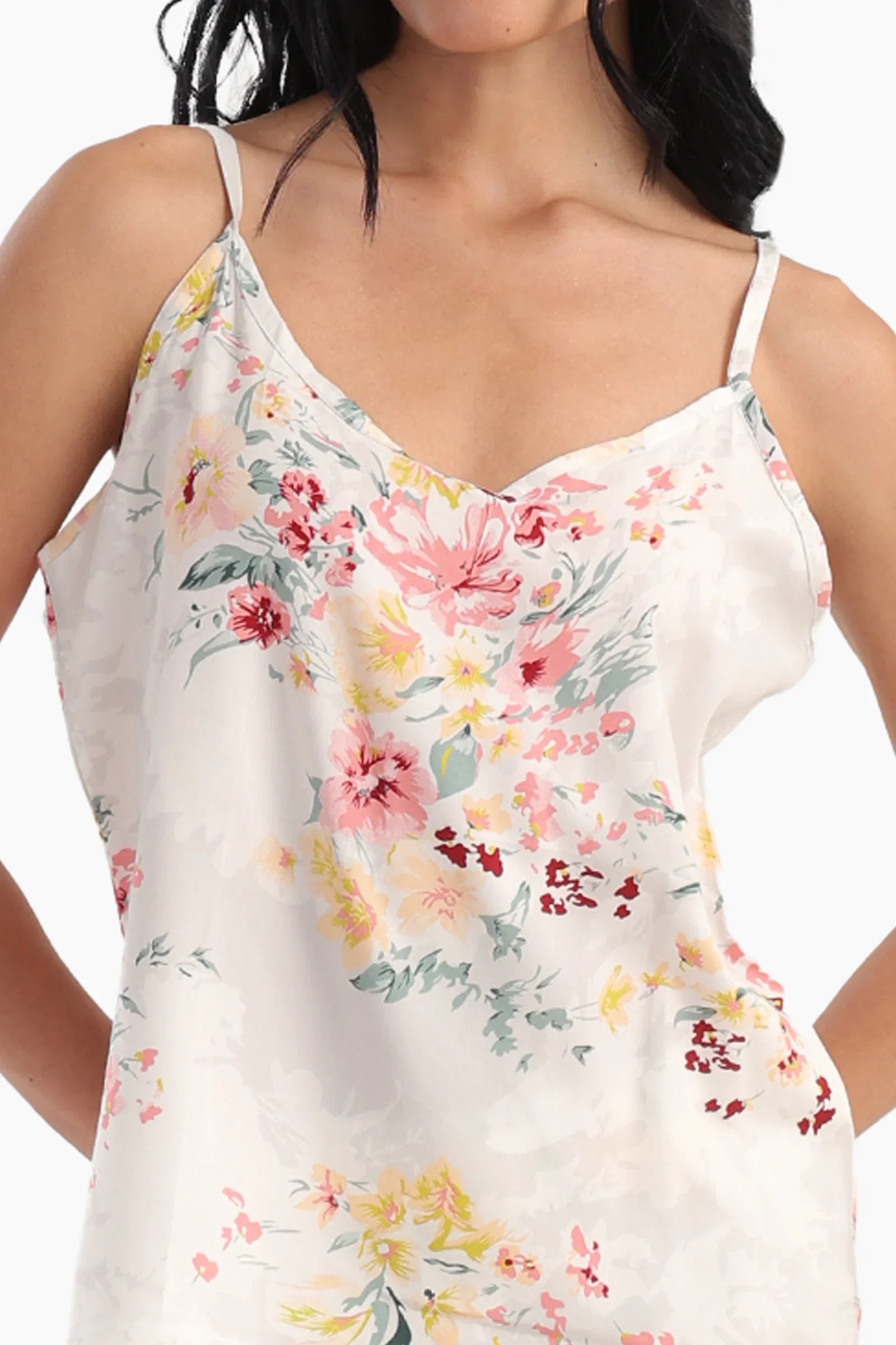استمتعي بالراحة والأناقة مع طقم بيجاما بطبعة زهور. مصنوع من الفيسكوز الناعم والمسامي، يتميز هذا الطقم بطبعة زهور جميلة وقصة عادية جذابة. يضمن لك القميص بدون أكمام وفتحة رقبة على شكل حرف V وحمالات رفيعة قابلة للتعديل شعورًا بالاسترخاء، بينما يوفر السروال ذو الخصر المرن والقصة المستقيمة ملاءمة مريحة مع جيبين جانبيين عمليين. سواء كنتِ تسترخي في المنزل أو تسترخي ليلًا، فإن طقم البيجاما سهل الارتداء هذا هو خياركِ الأمثل.