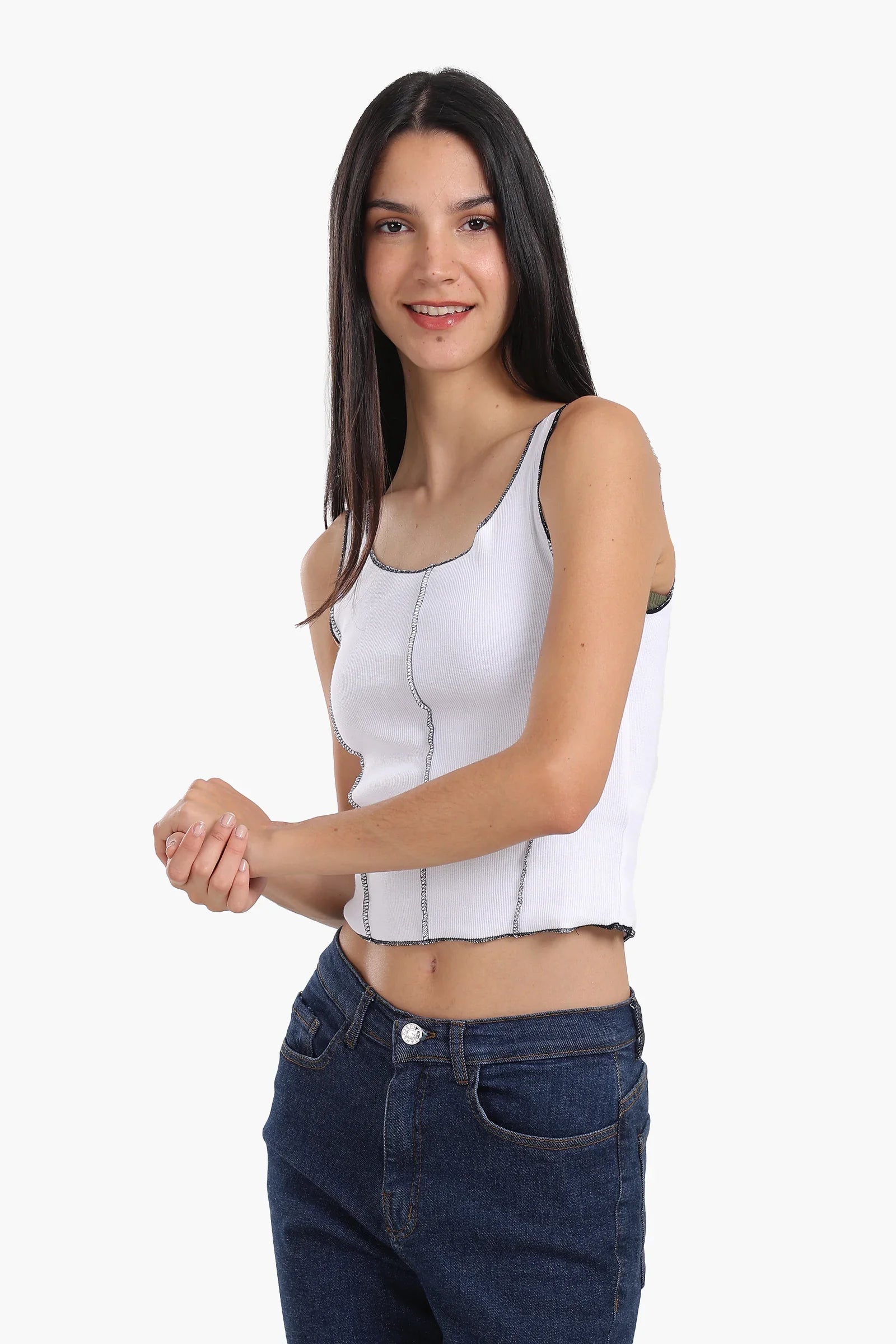 صُنعت هذه البلوزة من قطن ناعم ومُضلّع يسمح بمرور الهواء، ويمنحكِ شعورًا بالراحة والنعومة على بشرتكِ. تصميمه الكلاسيكيّ بدون أكمام مع فتحة رقبة واسعة يجعله قطعةً أساسيةً متعددة الاستخدامات للارتداء اليومي. تُضفي تفاصيل الخياطة المتباينة على طول الدرزات لمسةً من الجاذبية البصرية وعنصرًا تصميميًا أنيقًا. تصميمه المُلائم يُحيط بالجسم بلطف، مما يجعله مثاليًا للارتداء فوق الملابس الأخرى أو بمفرده. يُعدّ هذه البلوزة القطنيّة المُضلّع قطعةً أساسيةً لإطلالة كاجوال مريحة.
