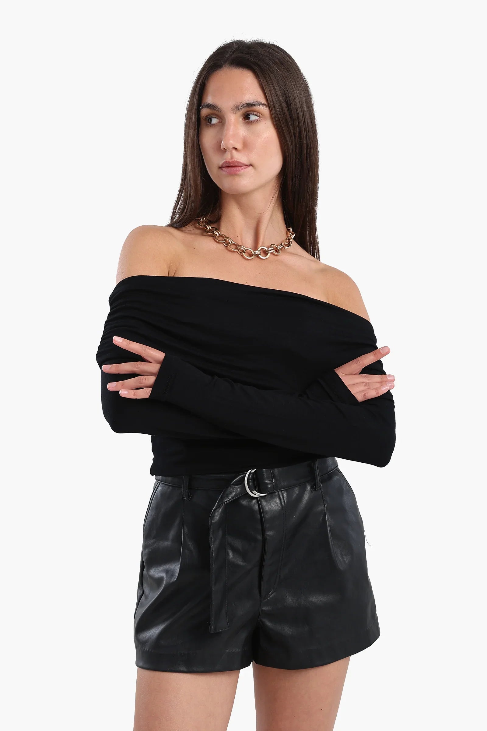أبهري الأنظار بهذه البلوزة السوداء المكشوفة الأكتاف، قطعة أنيقة ومتعددة الاستخدامات تُضفي سحرًا لا مثيل له. صُممت هذه البلوزة بقصّة ضيقة تُبرز جمال قوامكِ، وتتميز بتصميم أنيق مكشوف الأكتاف يُبرز خط رقبتكِ وكتفيكِ. تضفي الأكمام الطويلة لمسة من الأناقة، مما يجعلها مناسبة للمناسبات الرسمية وغير الرسمية. تصميمها سهل الارتداء يضمن سهولة ارتدائها، مما يجعلها إضافة لا غنى عنها في خزانة ملابسكِ لأي موسم.
