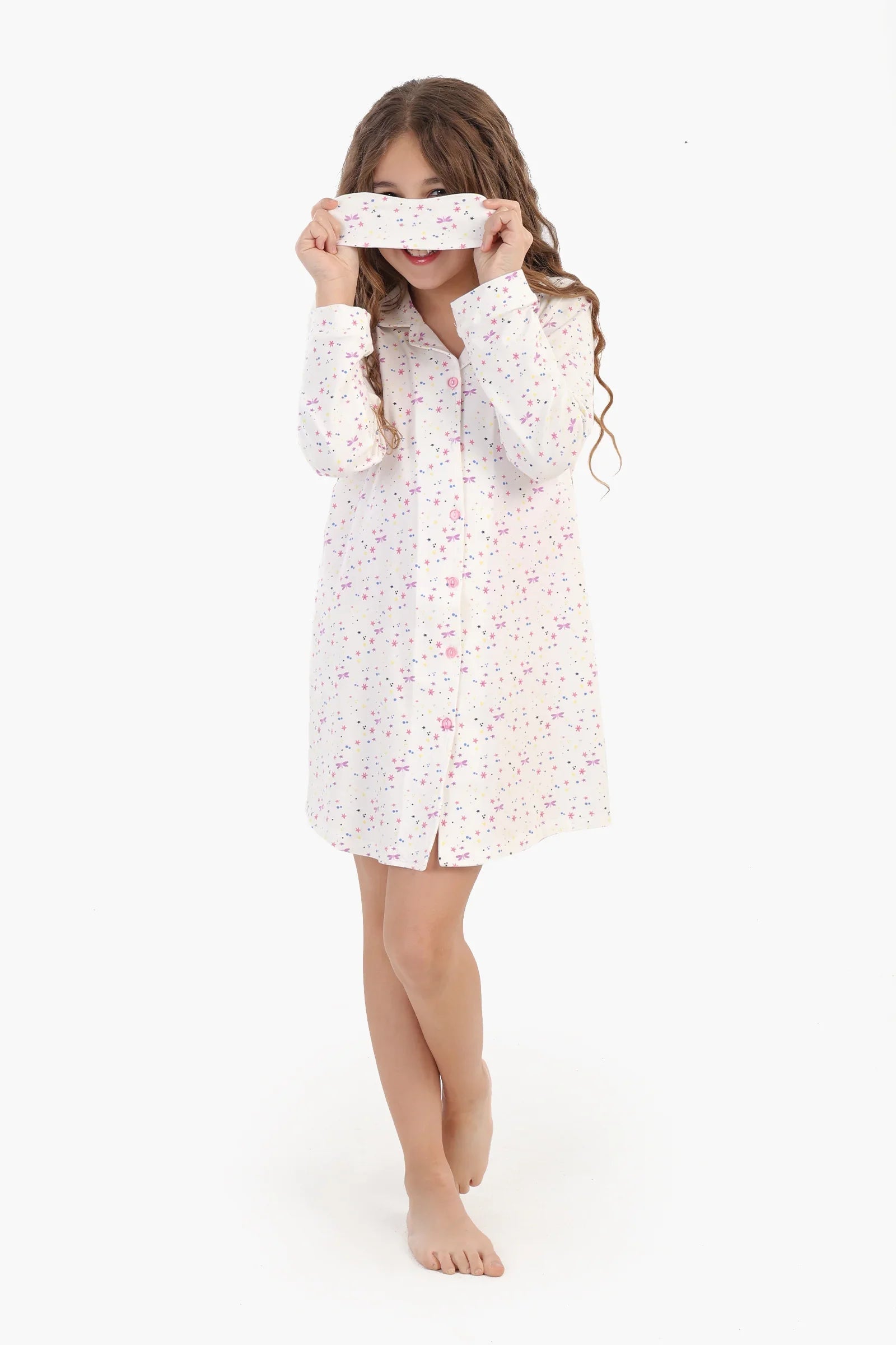 قميص نوم جذاب مطبوع مصنوع من قطن ناعم، ليضمن لك الراحة طوال الليل. يتميز بقصّة عادية ونقشة مطبوعة مرحة، وياقة كلاسيكية مدببة، وأزرار للإغلاق، وفتحة كاملة لإضفاء لمسة أنيقة. أكمامه الطويلة تُبقي صغيرك دافئًا ومريحًا. يأتي مع قناع نوم مطابق، مما يجعله الطقم المثالي لنوم هانئ. سهل الارتداء ومثالي لوقت النوم، فهو مريح وأنيق في آن واحد. تفاصيل المنتج: