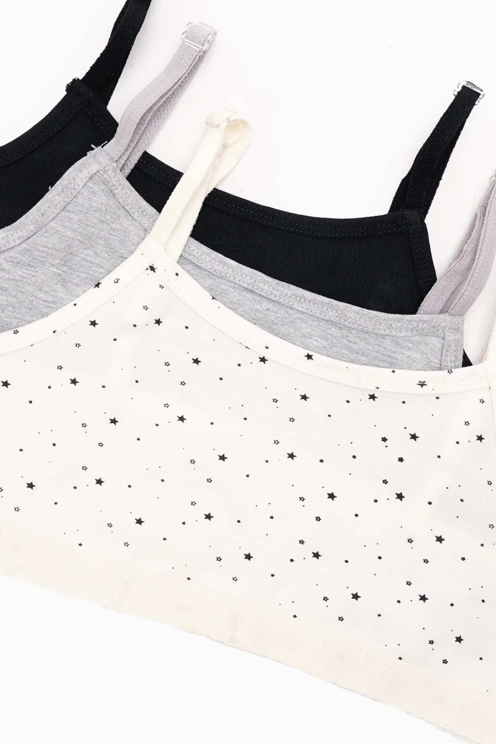 تتوفر هذه العبوة من ثلاث حمالات صدر بألوان وأنماط متنوعة، وتلبي مختلف الأذواق، ويمكن تنسيقها بسهولة مع مجموعة متنوعة من الملابس. سواء ارتديتها تحت تيشيرت، أو كقطعة ملابس متعددة الطبقات، أو للاسترخاء في المنزل، توفر هذه الحمالات تنوعًا وسهولة في الحركة. مثالية للفتيات الصغيرات اللواتي يُقدّرن الراحة والأناقة، تُقدّم مجموعة حمالات الصدر الثلاث حلاً عمليًا وعصريًا للارتداء اليومي. بفضل خاماتها عالية الجودة وتصميمها المدروس، من المؤكد أن هذه الحمالات ستصبح من أساسيات خزانة ملابس أي فتاة في مرحلة النمو.