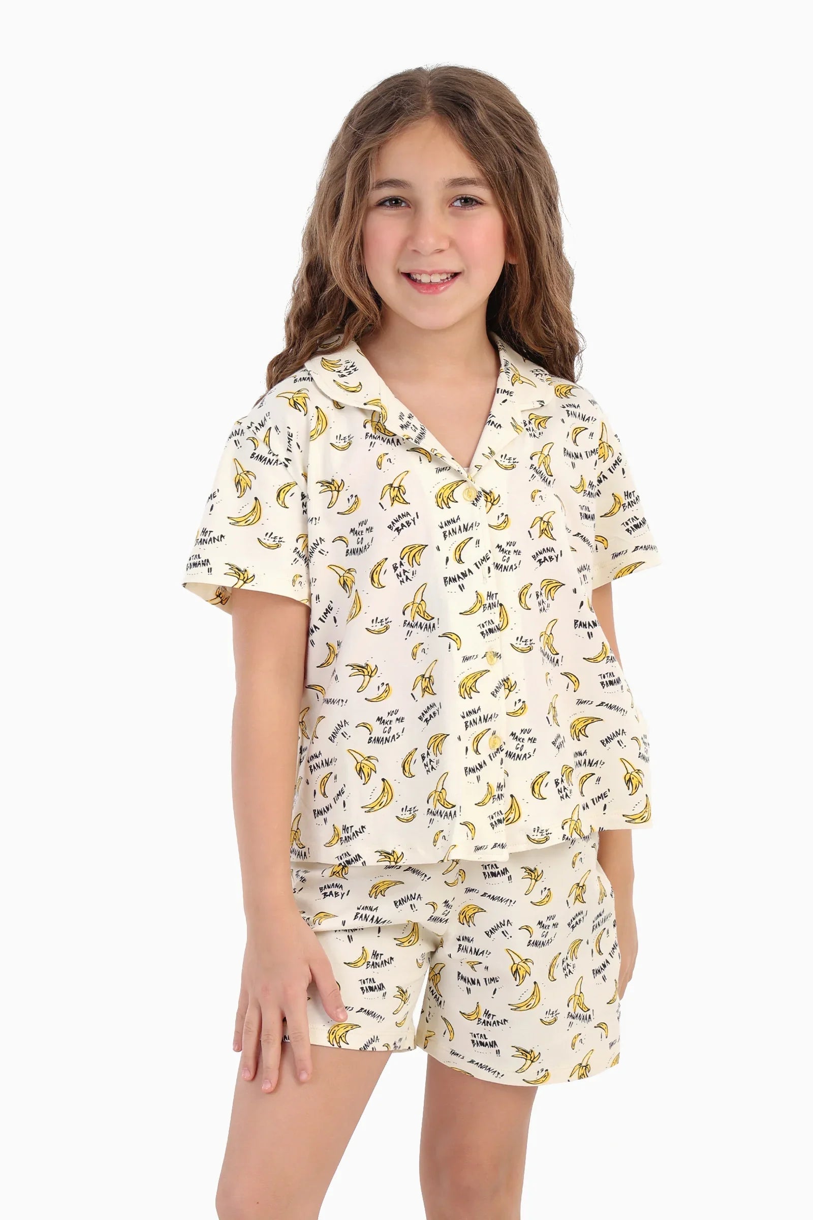 طقم بيجاما رائع بطبعة الموز، مصنوع من قطن ناعم، ليضمن لك نومًا هانئًا. يتميز تصميمه بقصته العادية ونقشه المطبوع المرح، مع ياقة مدببة وأزرار للإغلاق وفتحة كاملة لإطلالة كلاسيكية. كما يُضفي الشورت ذو الأكمام القصيرة والخصر المرن مزيدًا من الراحة والتهوية. سهل الارتداء ومثالي للاسترخاء أو النوم، ويُعدّ إضافةً رائعةً لخزانة ملابس أي طفل.
