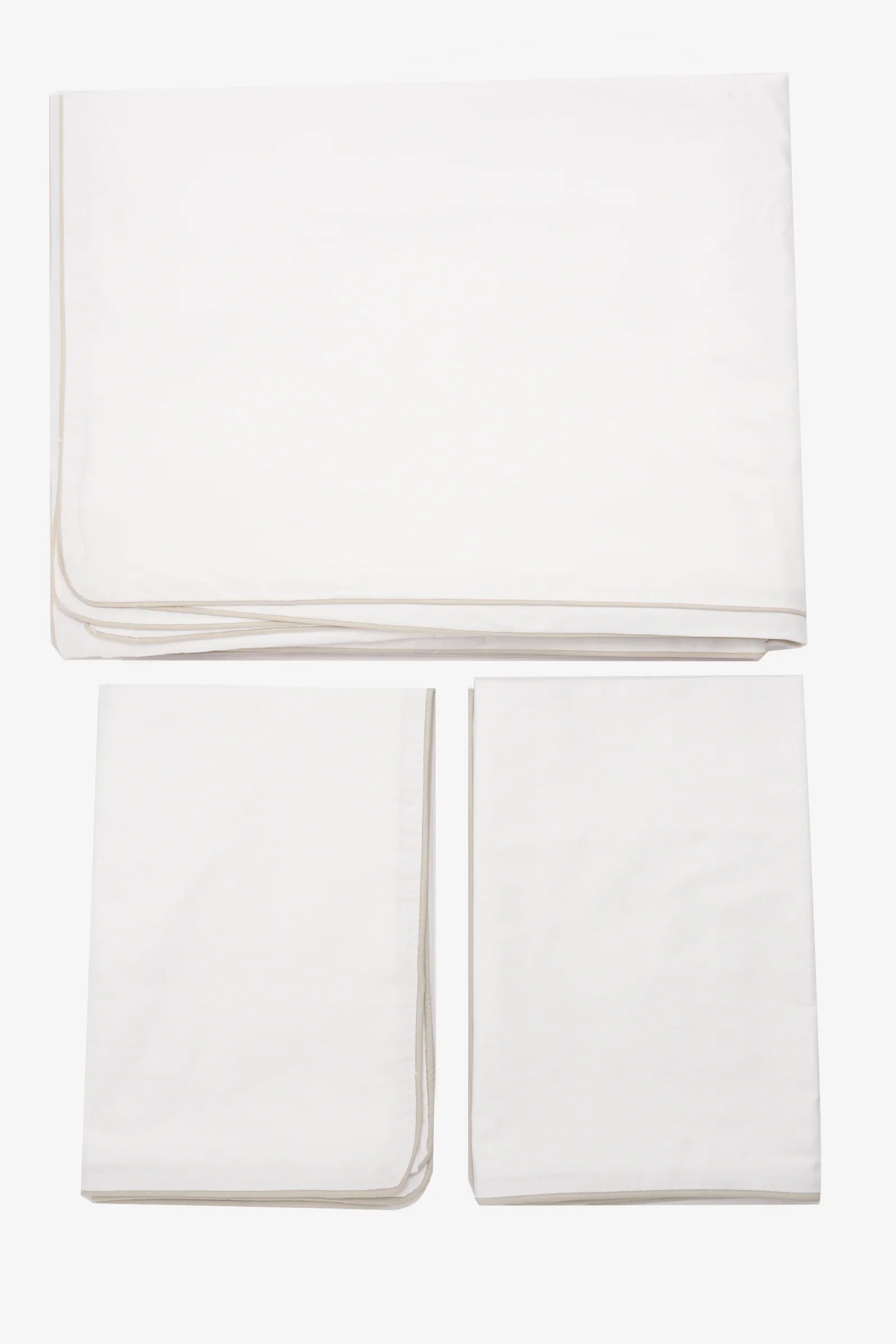 ارتقِ بديكور غرفة نومك مع طقم غطاء اللحاف الفردي الفاخر بلونه الفضي الأنيق، وإطاره الأنيق. يتضمن هذا الطقم غطاء لحاف وغطائي وسادة متطابقين، جميعها مزينة بنفس إطاره الأنيق لإطلالة متناسقة. مصنوع من قطن 100% بنسيج بيركال بكثافة 300 خيط، يوفر هذا الطقم نعومة ومتانة استثنائيتين. يضمن قماش البيركال ملمسًا ناعمًا ومنعشًا يزداد جمالًا مع كل غسلة. مثالي لخلق جو راقي وجذاب، يوفر طقم غطاء اللحاف هذا الراحة والأناقة، مما يجعله إضافة مثالية لأي غرفة نوم.