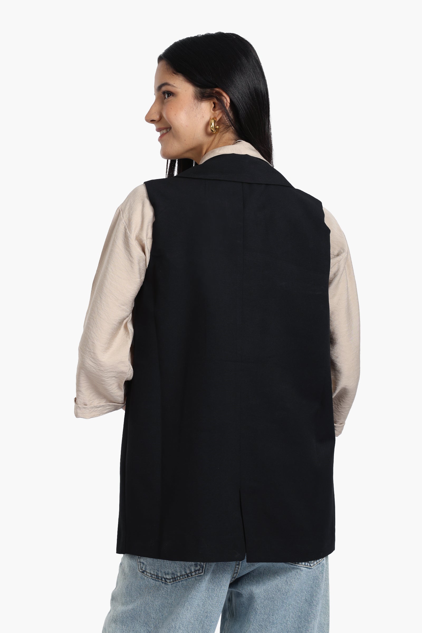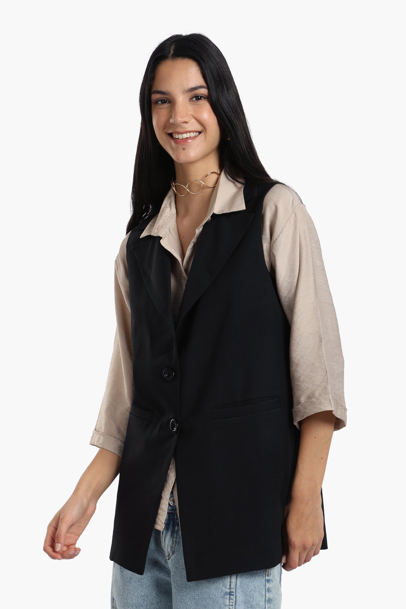 تعرّفي على قطعة أساسية جديدة في خزانة ملابسكِ: سترة أنيقة بدون أكمام بلمسة عصرية. مصنوعة من بوليستر خفيف الوزن بقصّة مريحة، تتميز بفتحة رقبة على شكل حرف V كلاسيكية، وياقة مدببة، وزرّين أماميين لمظهر أنيق لا يُضاهى. لونها الموحد يجعلها متعددة الاستخدامات، بينما تُضفي الفتحة الخلفية عليها مزيدًا من الراحة والحركة. سهلة الارتداء والتنسيق - هذه السترة تنقلكِ من العمل إلى عطلة نهاية الأسبوع بكل سهولة.