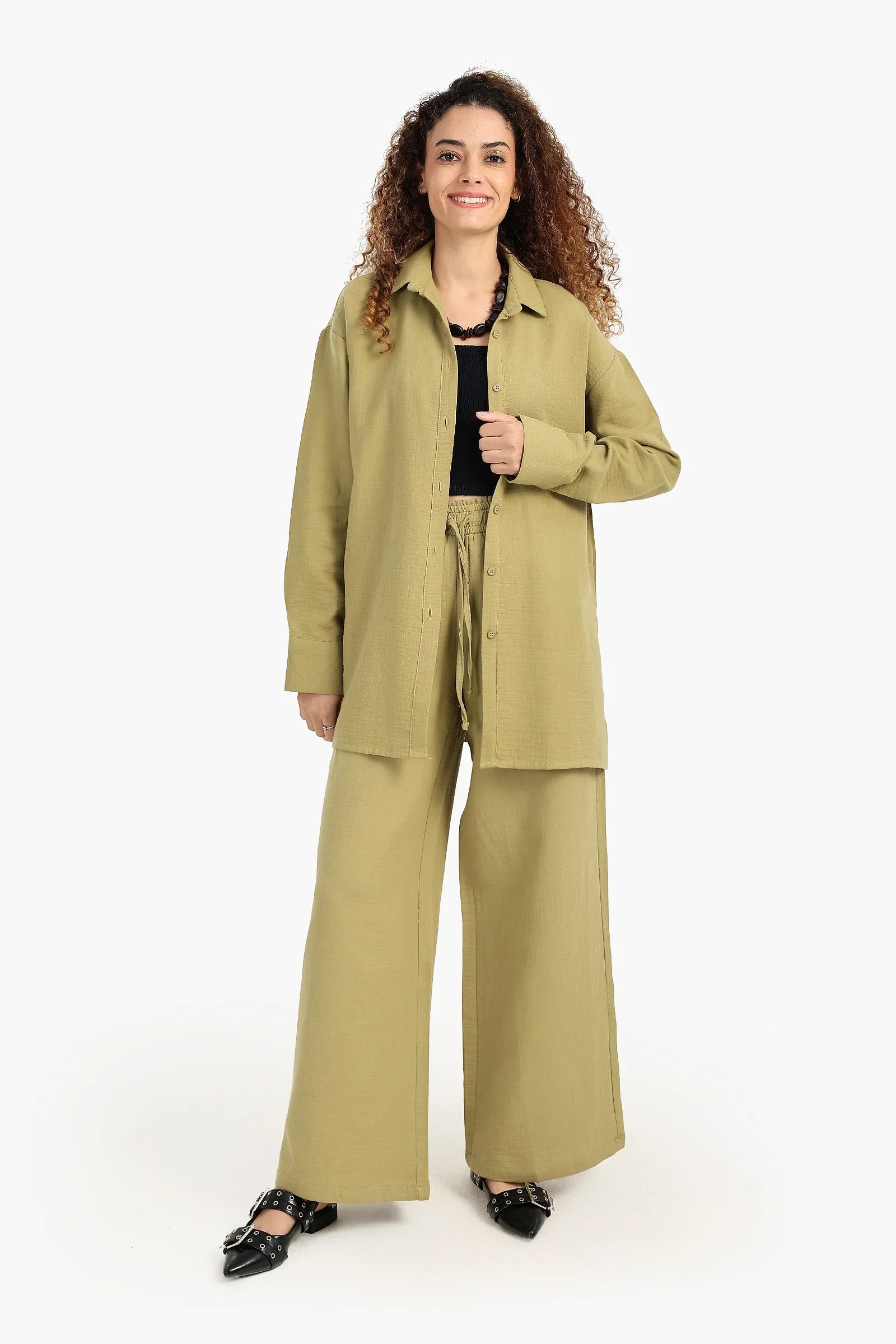 • قميص باكمام طويلة بفتحة جانبية