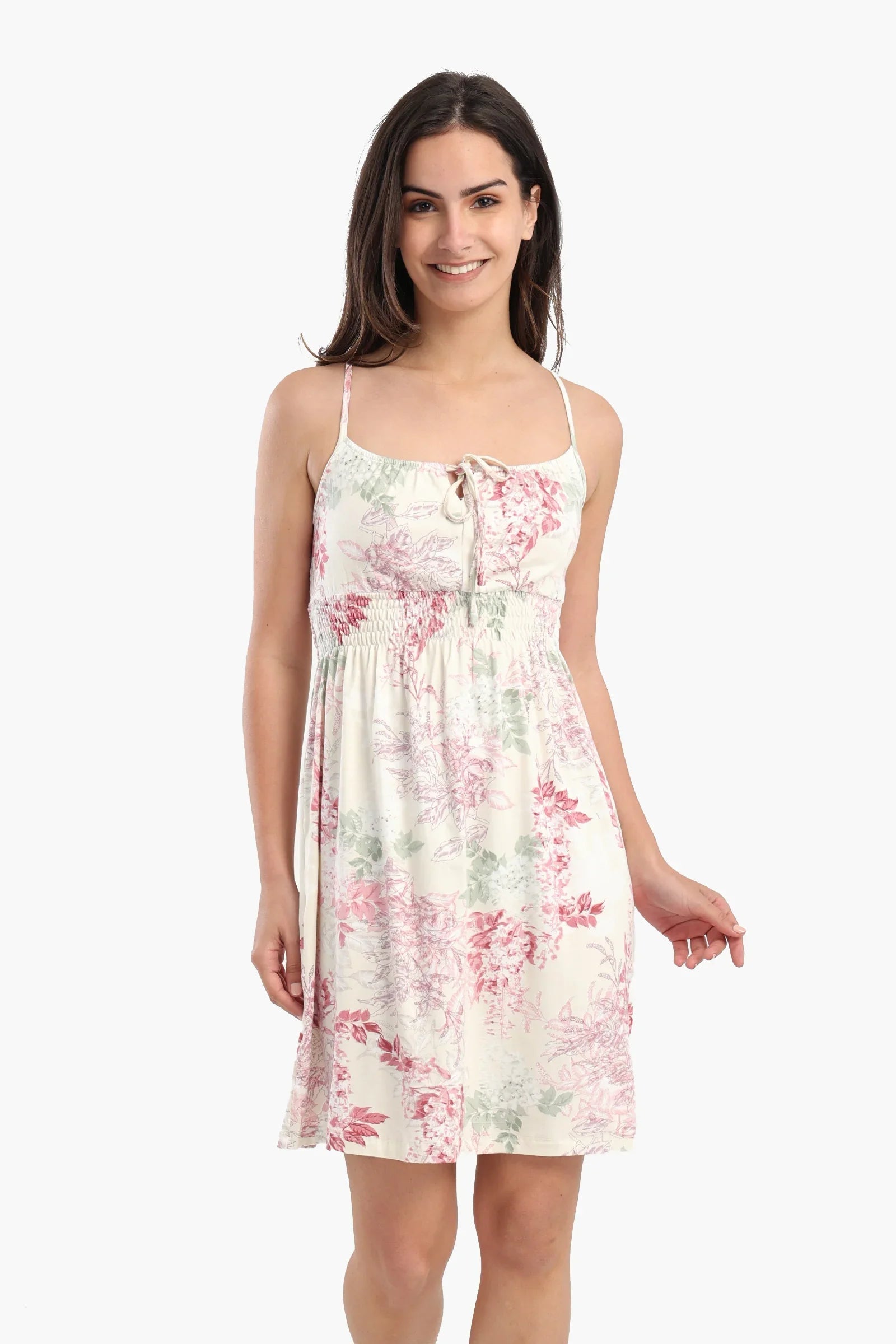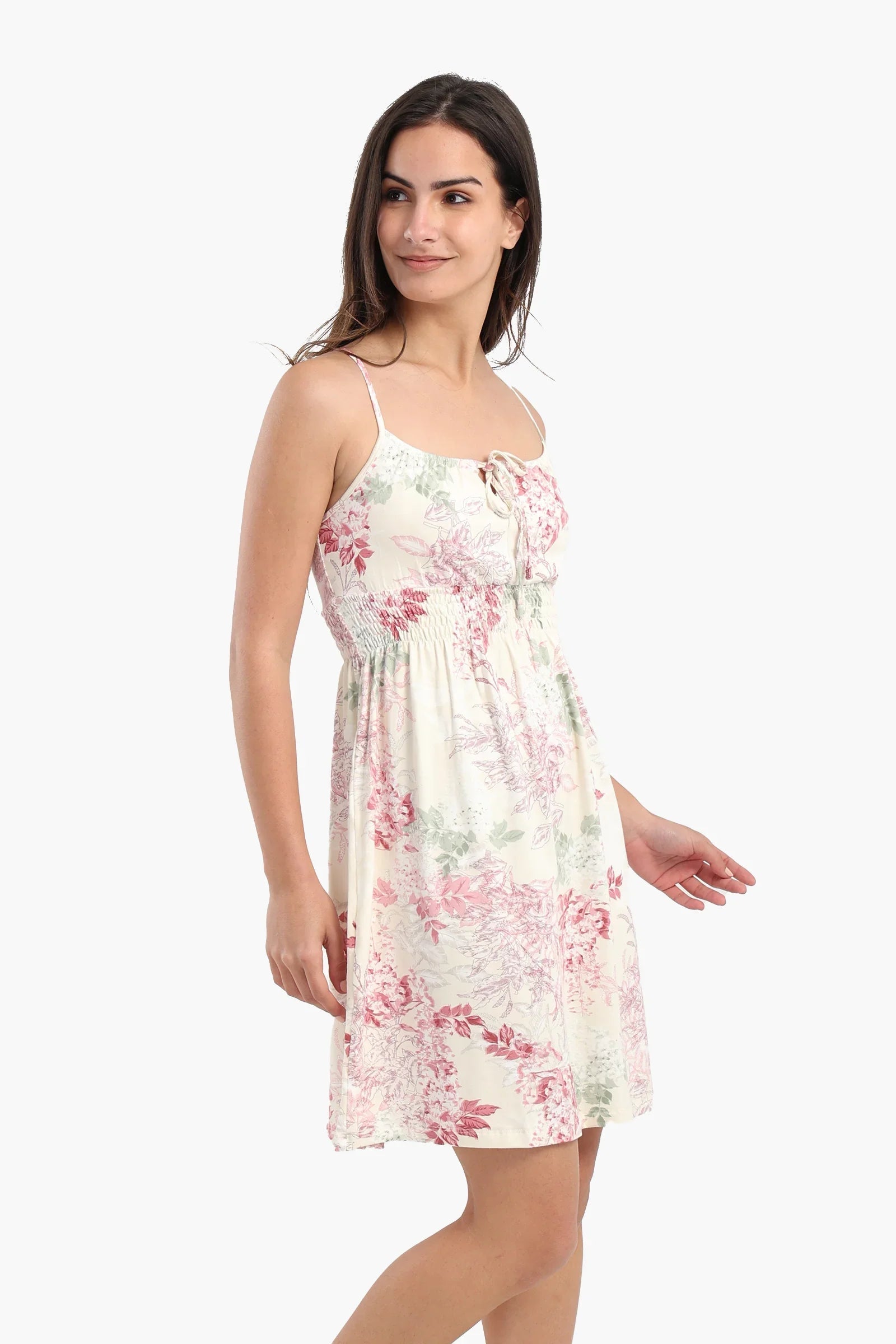 قميص نوم فيسكوز بحمالات رفيعة بطبعة
