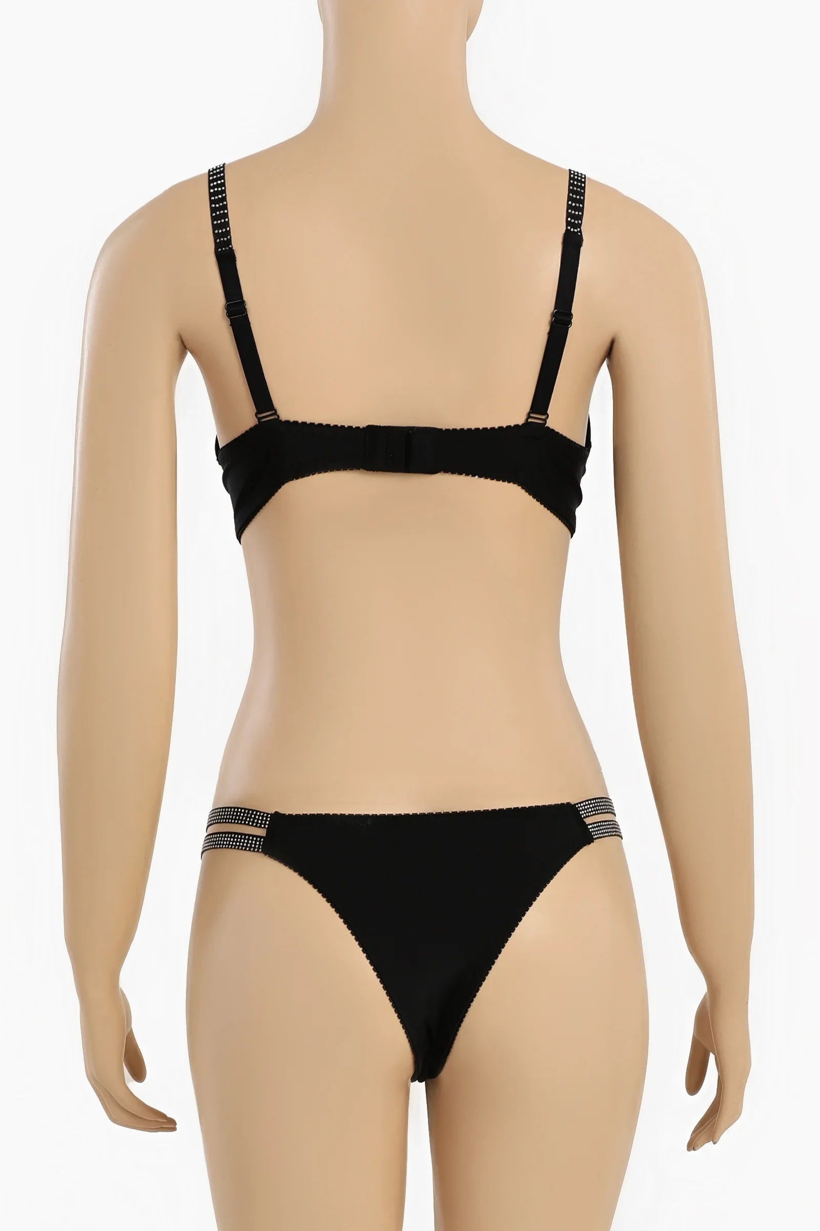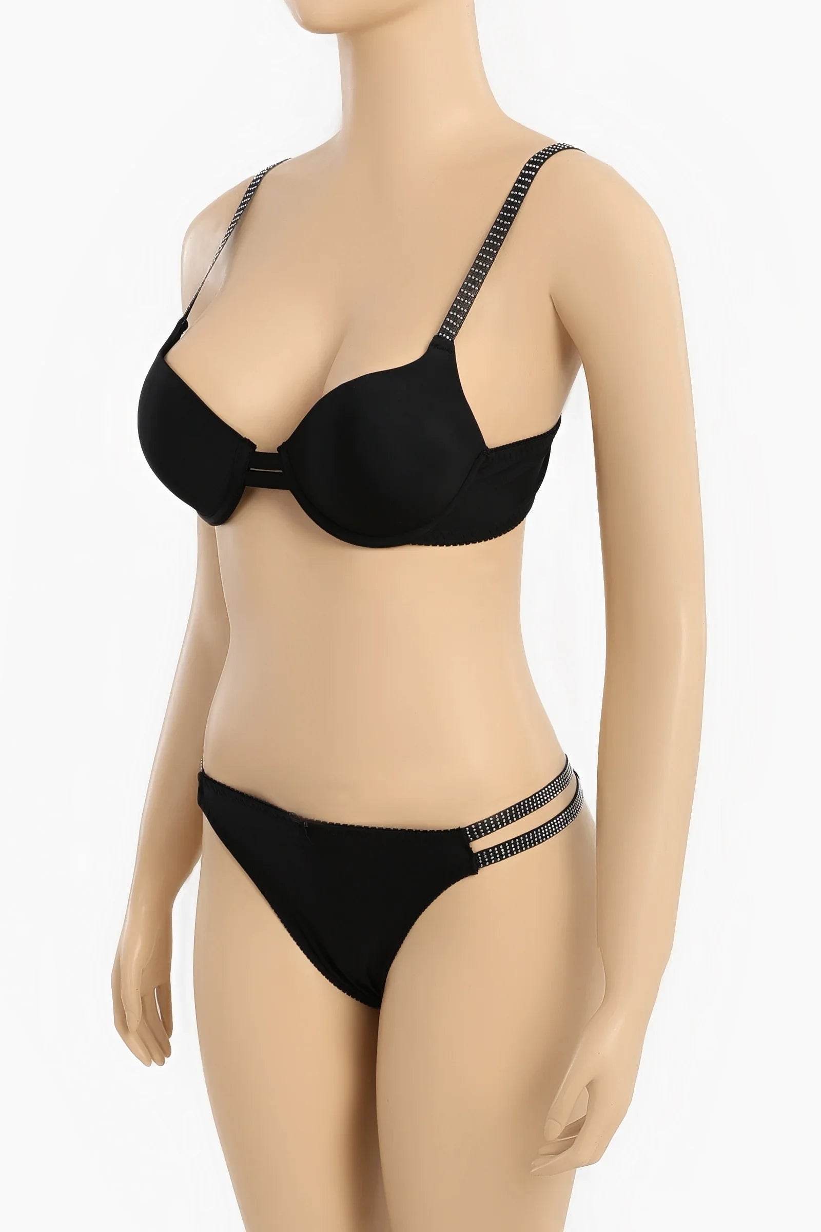 أبرزي جمال منحنياتكِ مع طقم حمالة الصدر والسروال الداخلي المبطن، المصمم لمزيج مثالي من الدعم والأناقة. توفر حمالة الصدر المبطنة رفعًا جذابًا، بينما تضمن الأشرطة القابلة للتعديل ملاءمة مثالية. يتميز هذا الطقم بتفاصيل مرصعة بالكريستال لإضفاء لمسة من التألق، وهو أنيق ومريح في آنٍ واحد. يوفر الخطافان والعينان للإغلاق دعمًا آمنًا، بينما يضمن سروال البكيني الداخلي بخصر مطاطي ملاءمة مريحة ومرنة. مصمم لسهولة الارتداء، وتصميمه سهل الارتداء يجعله قطعة أساسية لثقة يومية.