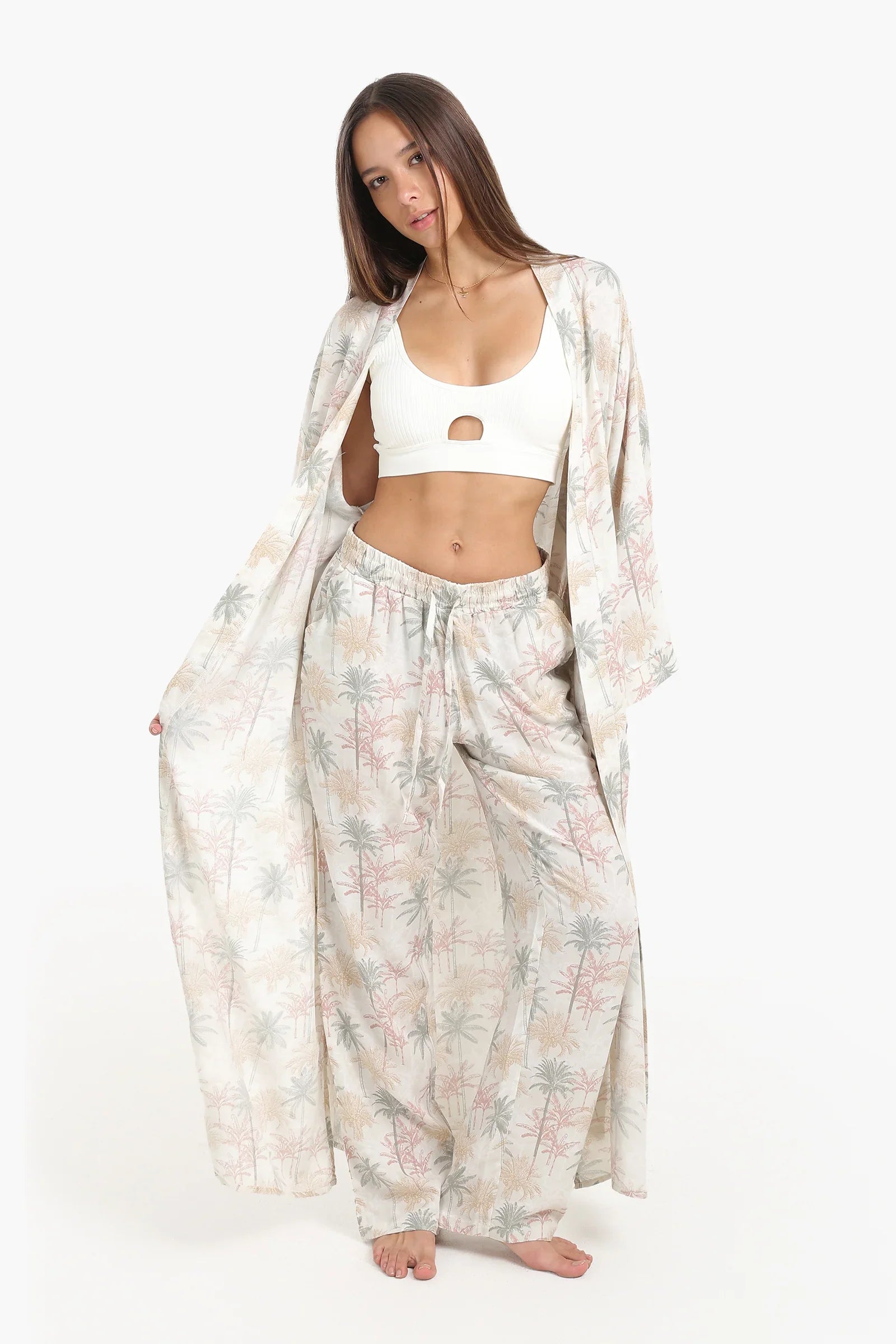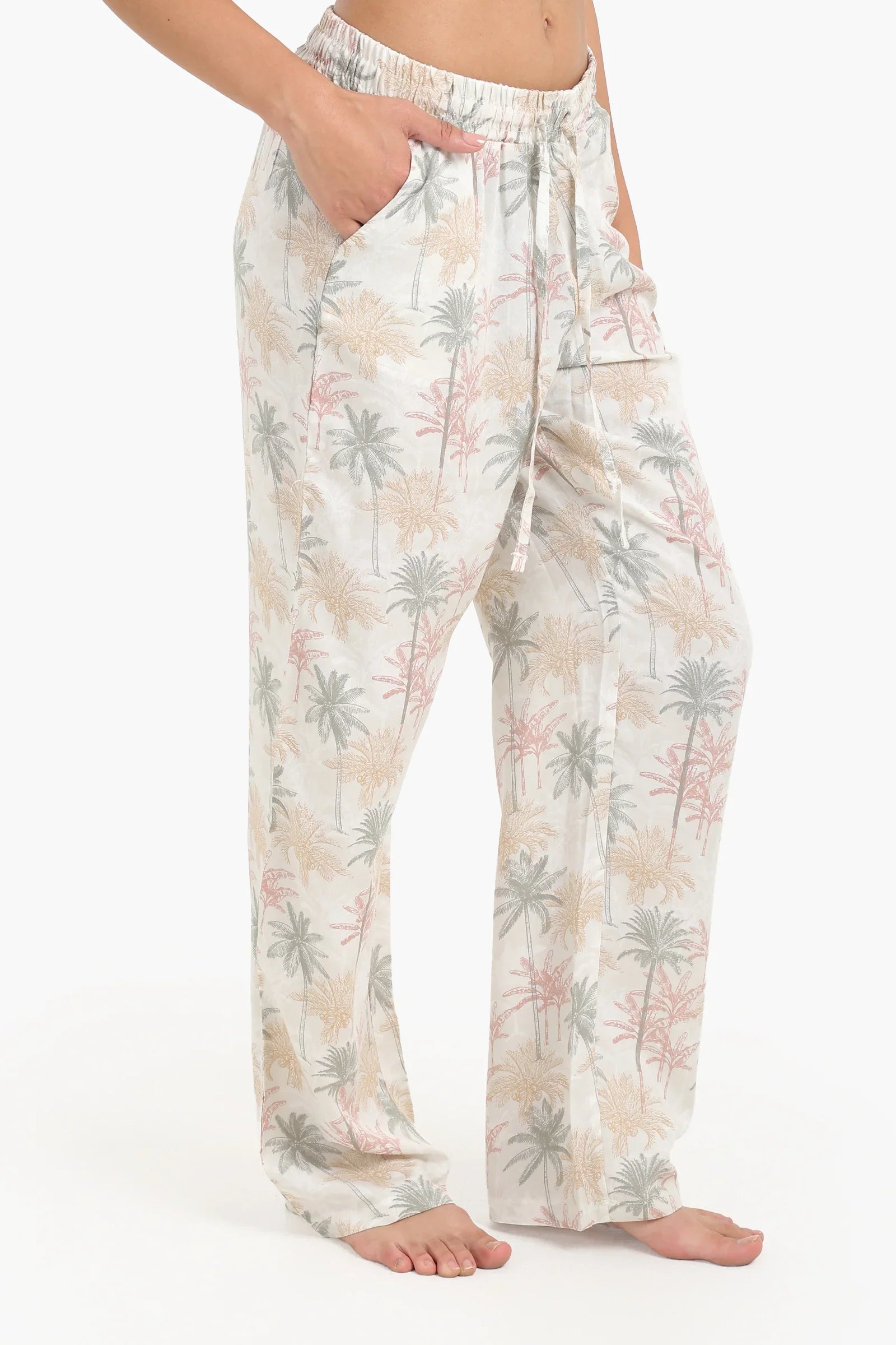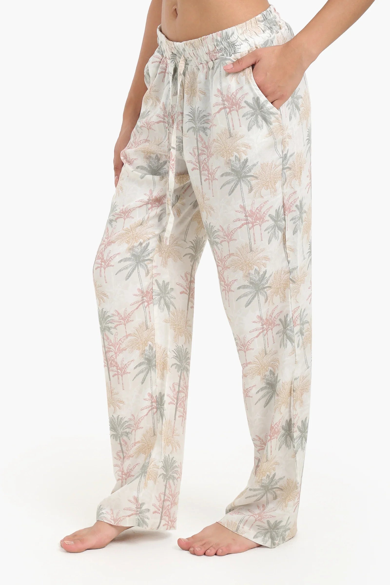 استمتعي بأناقة استوائية مع بنطال بيجاما فيسكوز بطبعة نخيل، مصمم ليمنحكِ الراحة والأناقة. مصنوع من فيسكوز ناعم يسمح بمرور الهواء، يتميز بقصة مريحة تنسدل بسلاسة، مما يجعله مثاليًا للاسترخاء أو الخروجات غير الرسمية. يضمن حزام الخصر المرن المزود برباط ملاءمة قابلة للتخصيص، بينما يمنحكِ تصميمه المستقيم والطويل مظهرًا جذابًا. جيوب جانبية عملية تضيف المزيد من الراحة، وتصميمه سهل الارتداء يجعله سهل الارتداء.