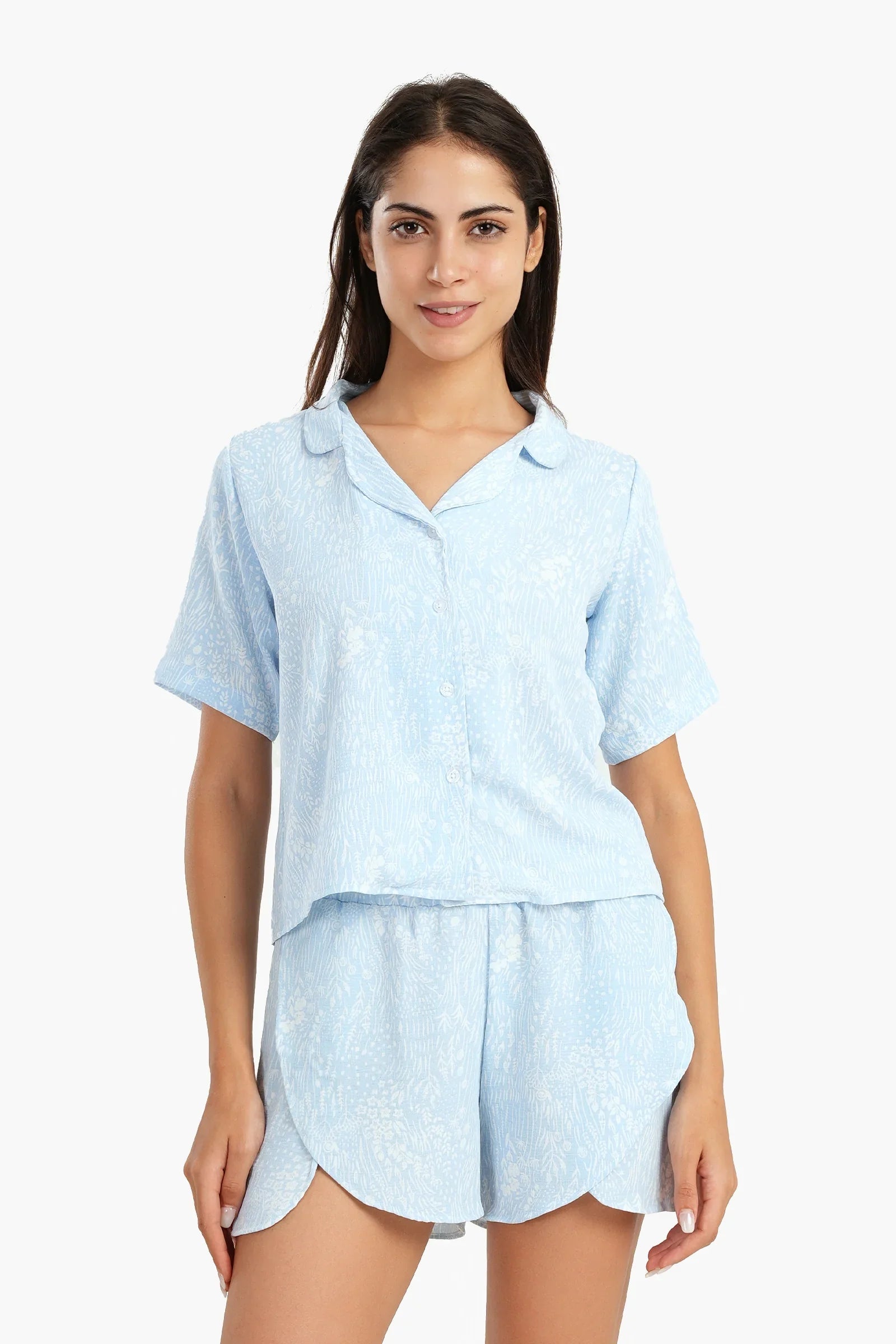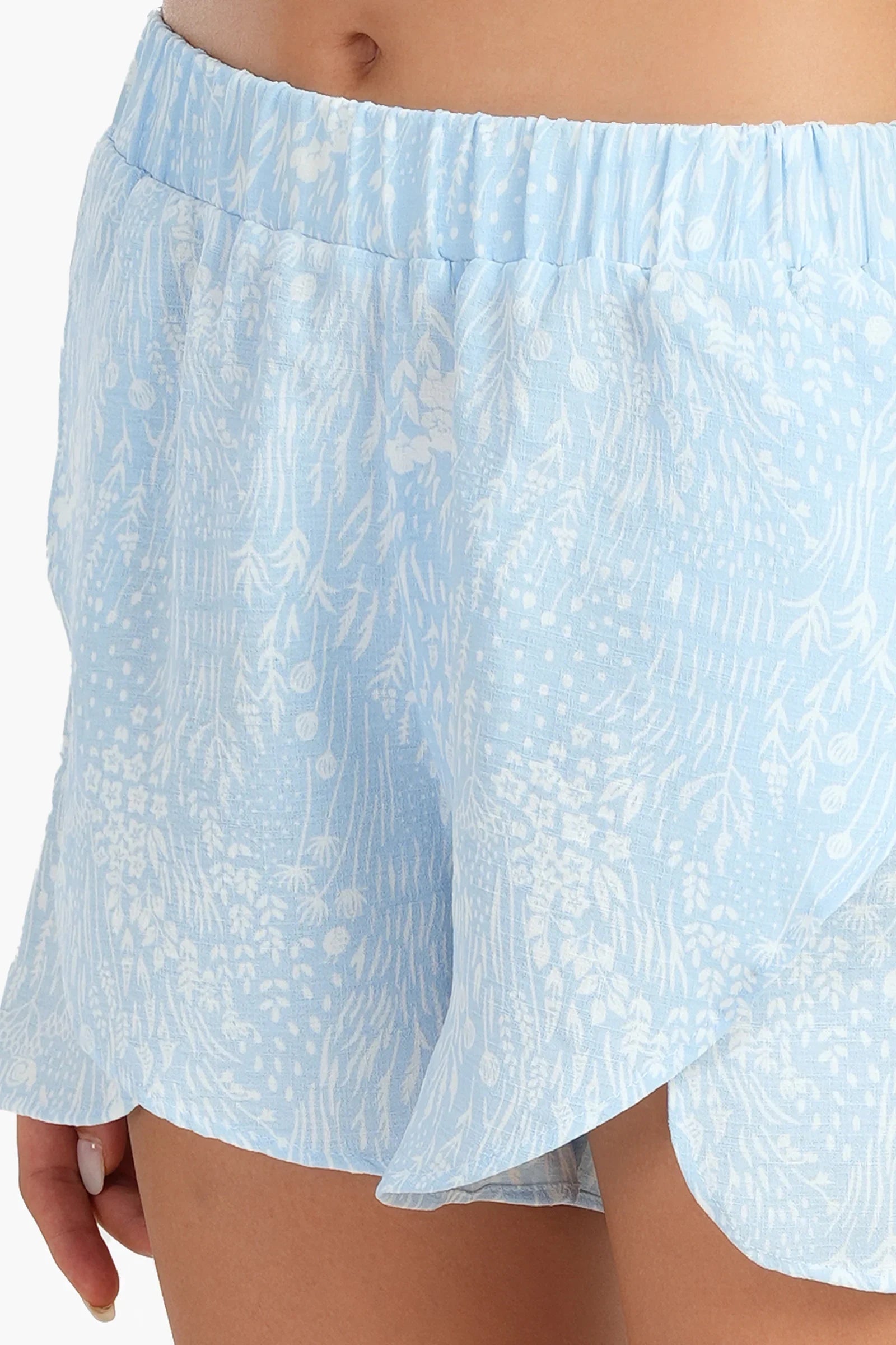 استرخِ بأناقة مع شورت البيجامة القطني الأزرق الفاتح هذا، مثالي لقضاء ليلة مريحة في المنزل أو للاسترخاء. مصمم بقصة عادية ونقشة مطبوعة مرحة، يوفر هذا الشورت الراحة والجاذبية. يضمن الخصر المرن ملاءمة مريحة ومرنة، بينما تضفي الحافة المستديرة لمسة ناعمة وأنثوية. سهل الارتداء، هذا الشورت قطعة أساسية في مجموعة ملابس نومك.