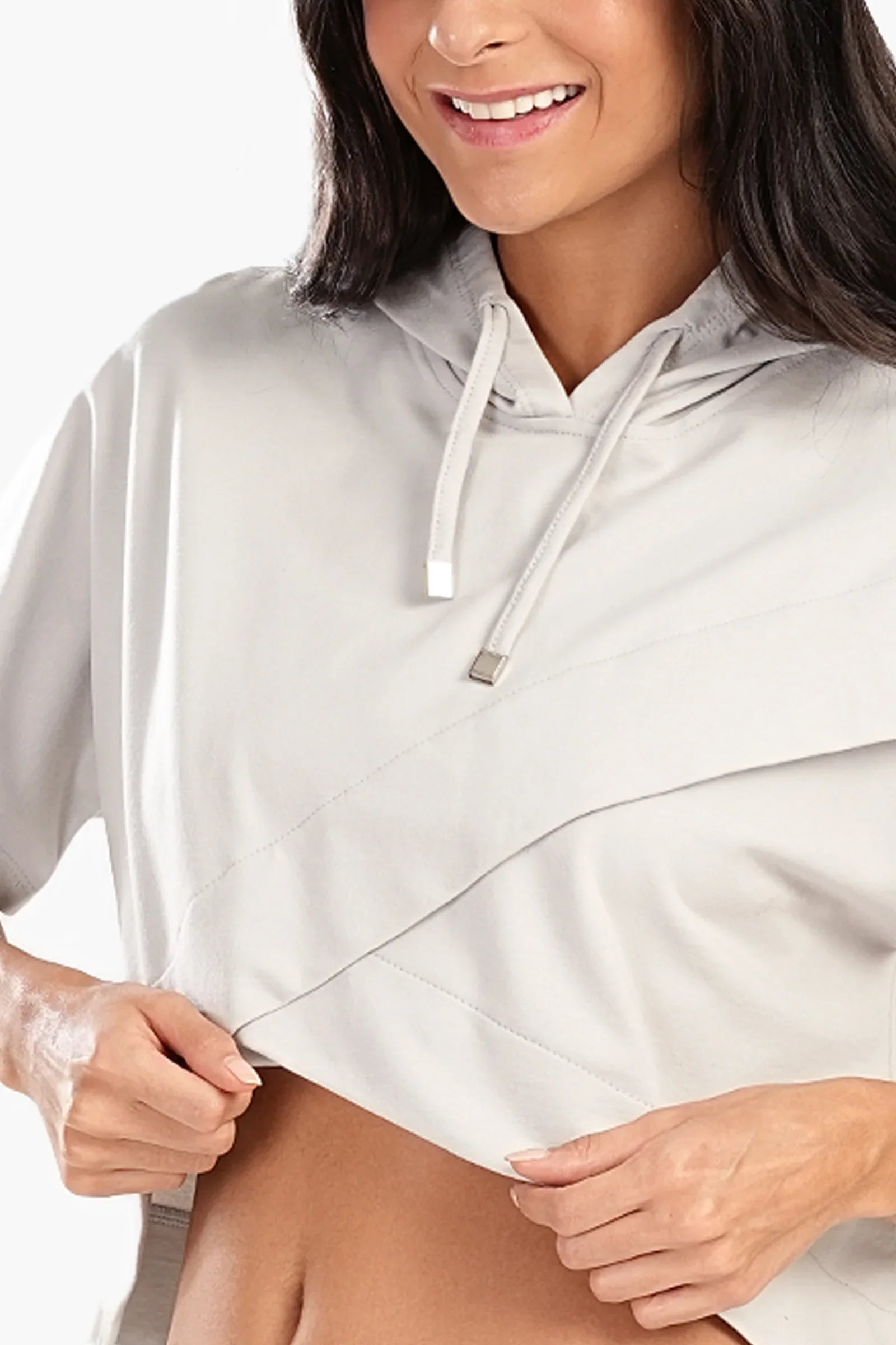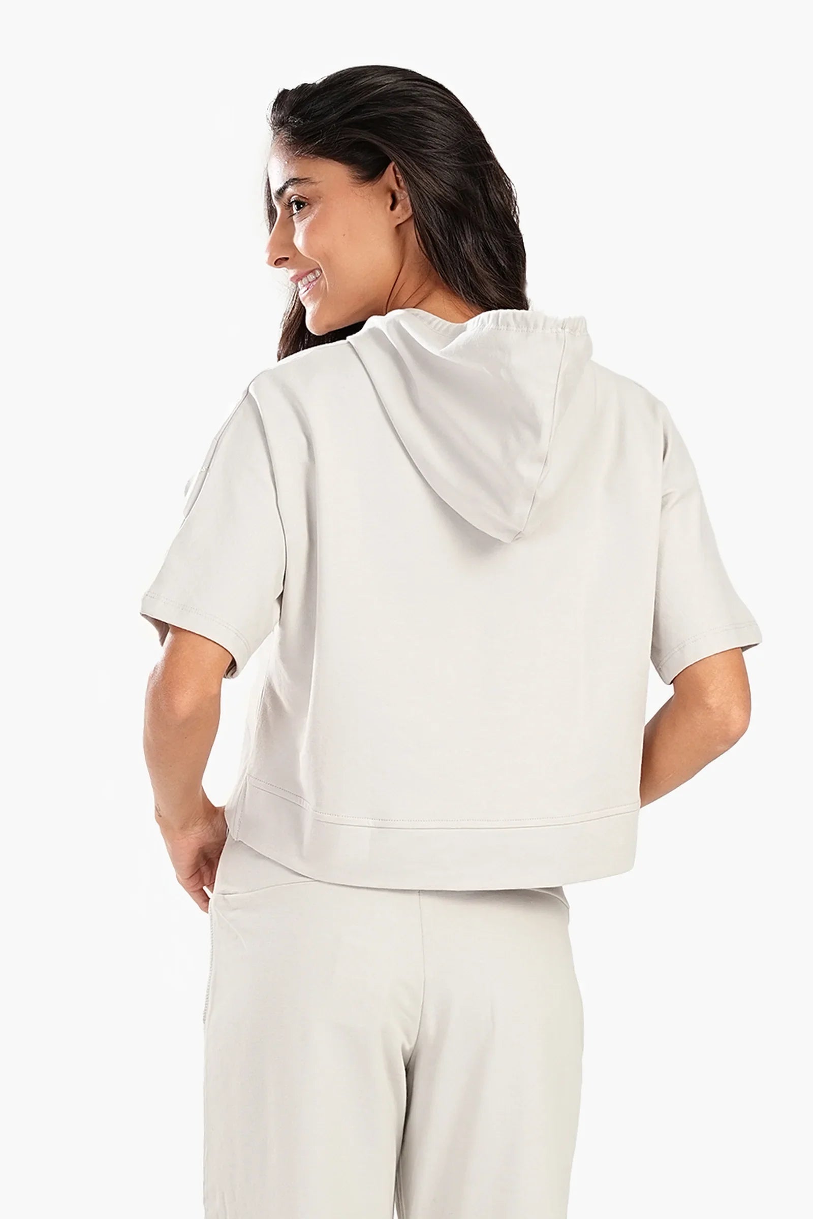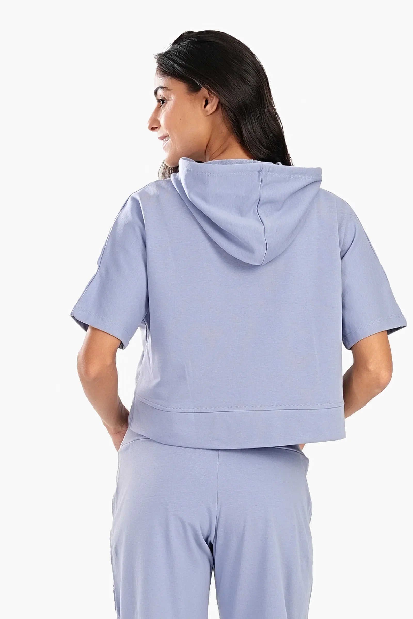 القصة العادية تضمن مظهرًا مريحًا، بينما يضيف النقش السادة لمسة من البساطة والتنوع. تتميز هذه البلوزة بياقة بغطاء رأس ورباط، وتوفر راحة قابلة للتعديل وإطلالة كاجوال. أكمامها القصيرة تسمح بالتهوية، مما يجعلها مناسبة لليالي الدافئة.