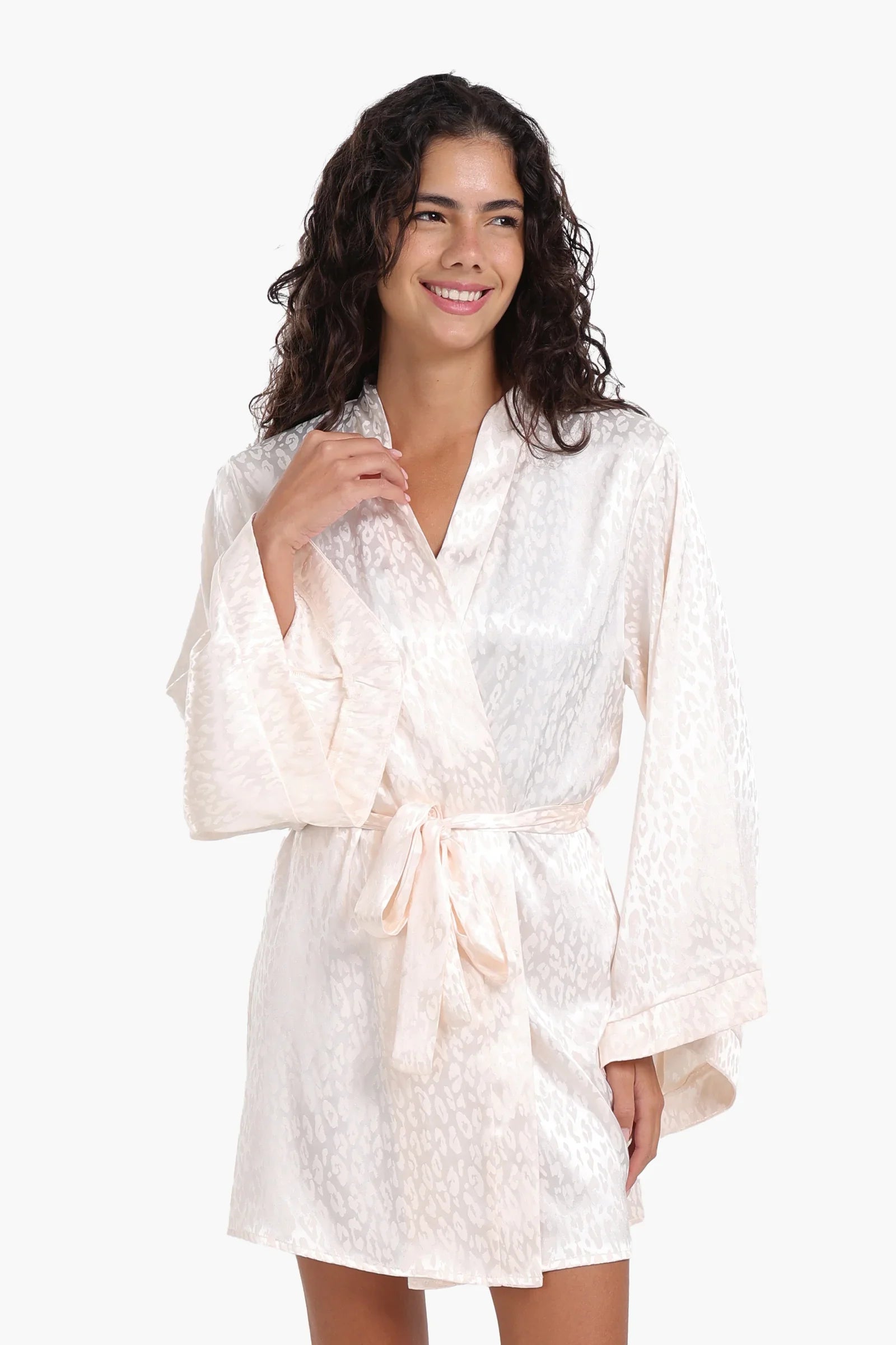 هذا الرداء الفاخر من الساتان يتميز بقصّة فضفاضة ومريحة لراحة لا مثيل لها. يتميز بنقشة جاكار، مما يضفي لمسة من الأناقة على مجموعة ملابسك المريحة. ياقة مفتوحة وأكمام طويلة تضفي عليه مظهرًا كلاسيكيًا، بينما يتيح حزام الخصر القابل للفصل إمكانية تعديل المقاس. يتميز هذا الرداء بطول قصير، مما يجعله سهل الارتداء ومثاليًا للاسترخاء في المنزل أو لإضافة لمسة أنيقة إلى روتينك قبل النوم.