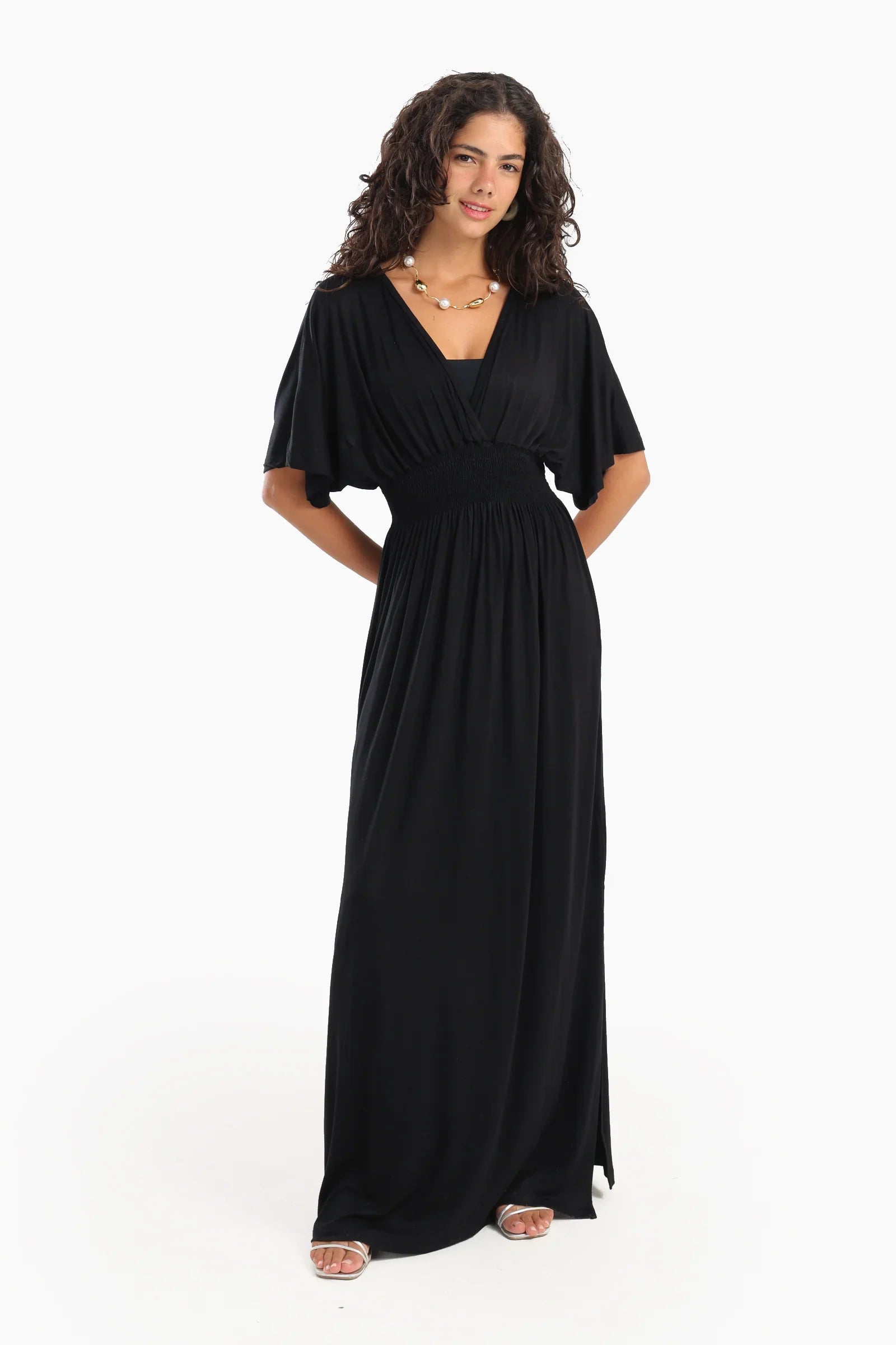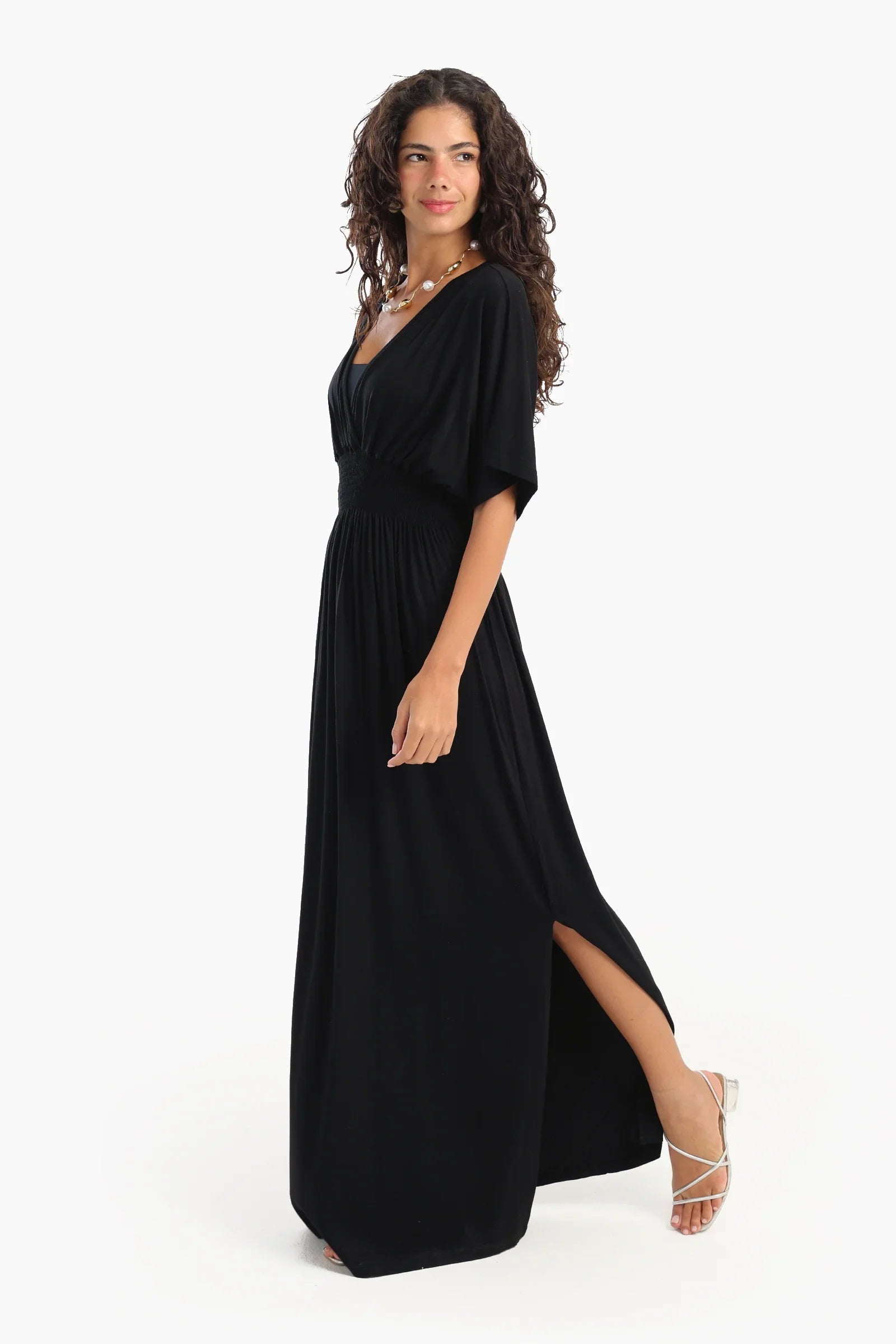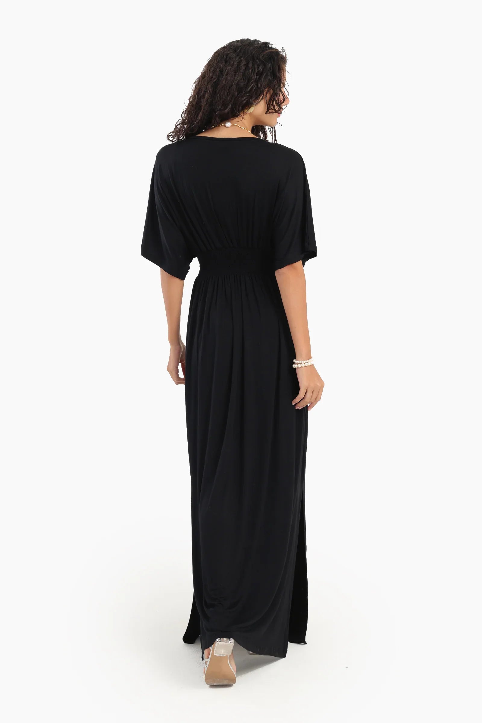 استمتعي براحة لا مثيل لها مع قميص النوم الطويل هذا، المصمم لنوم هادئ ومريح. مصنوع من مزيج الفيسكوز الناعم، يوفر هذا الثوب ملمسًا ناعمًا وجيد التهوية على بشرتك. يضفي التصميم الموحد وفتحة العنق على شكل حرف V مظهرًا كلاسيكيًا جذابًا، بينما تضفي الأكمام القصيرة والفتحات الجانبية لمسة من الأناقة الخفيفة. بفضل تصميمه سهل الارتداء، يُعد هذا الثوب مثاليًا لسهولة الارتداء وتجربة نوم مريحة.