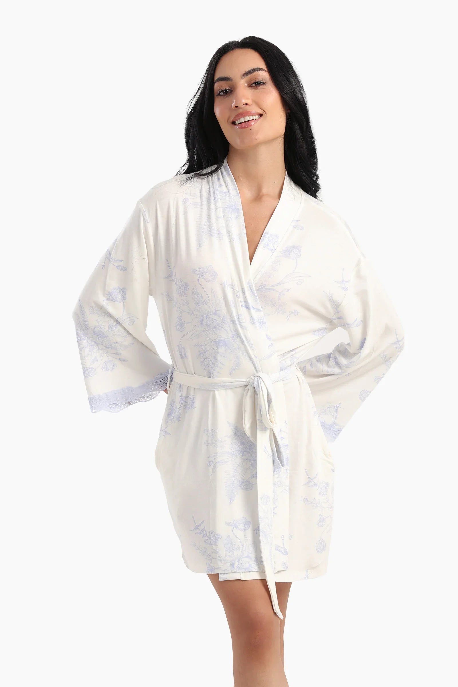 أضف لمسة من الأناقة والراحة مع رداءنا المطبوع. مصنوع من مزيج فيسكوز ناعم، يتميز هذا الرداء بقصّة مريحة، مثالية للاسترخاء أو الاسترخاء. يضفي النقش المطبوع الجميل، إلى جانب تفاصيل الدانتيل على الأكمام، لمسة أنثوية. يوفر خط العنق المفتوح والأكمام الطويلة ملاءمة مريحة، بينما يسمح حزام الخصر القابل للفصل بتعديل المقاس وإضفاء مظهر أنيق. مع جيوب جانبية لمزيد من الراحة، يتميز هذا الرداء بالأناقة والعملية، وسهل الارتداء في أي مناسبة.