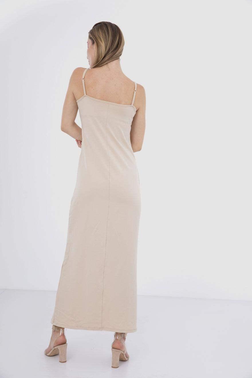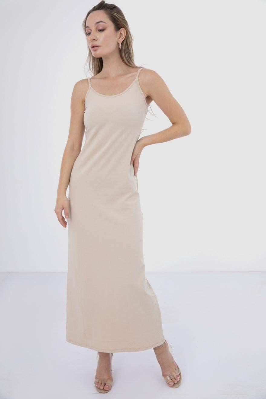 يتميز هذا الفستان بتصميم بدون أكمام وقصة فضفاضة،  تصميم ساده على الجهة الأمامية يضفي لمسة من التفاصيل.