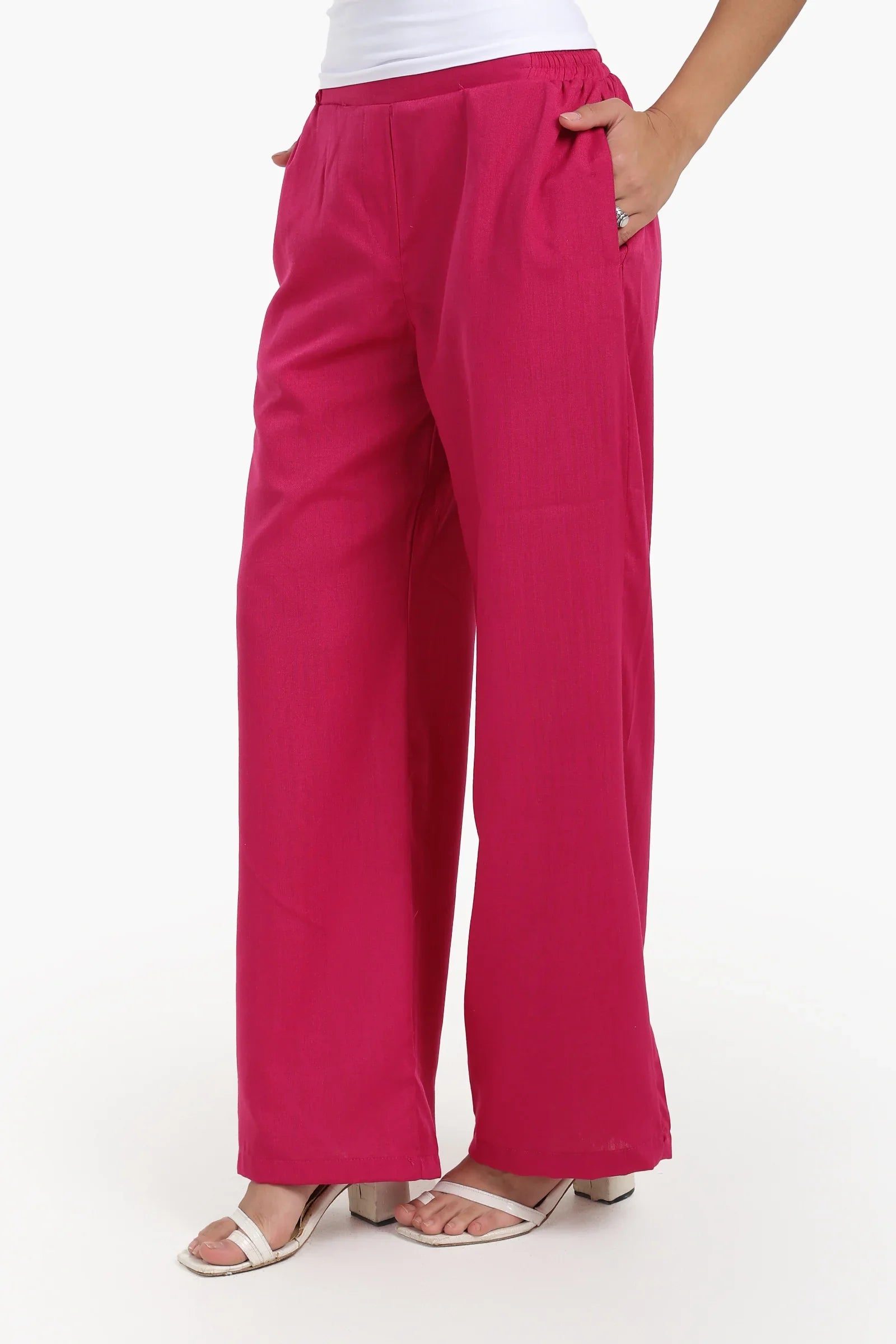 هذا البنطال الواسع ذو القصّة المريحة يُوفّر التوازن المثالي بين الراحة والأناقة. مصنوع من قماش بوليستر ناعم، ويتميز بخصر مطاطي عالٍ يضمن ملاءمة مريحة ومحكمة. يُضفي تصميمه الواسع لمسةً من الاسترخاء، بينما يُضفي الجيبان الجانبيان لمسةً عملية. بفضل تصميمه الطويل، يُعدّ هذا السروال سهل الارتداء مثاليًا للإطلالات الكاجوال والأنيقة. سواءً كنتِ تسترخي أو تتنقلين، سيمنحكِ هذا االسروال إطلالةً أنيقةً ومريحةً.