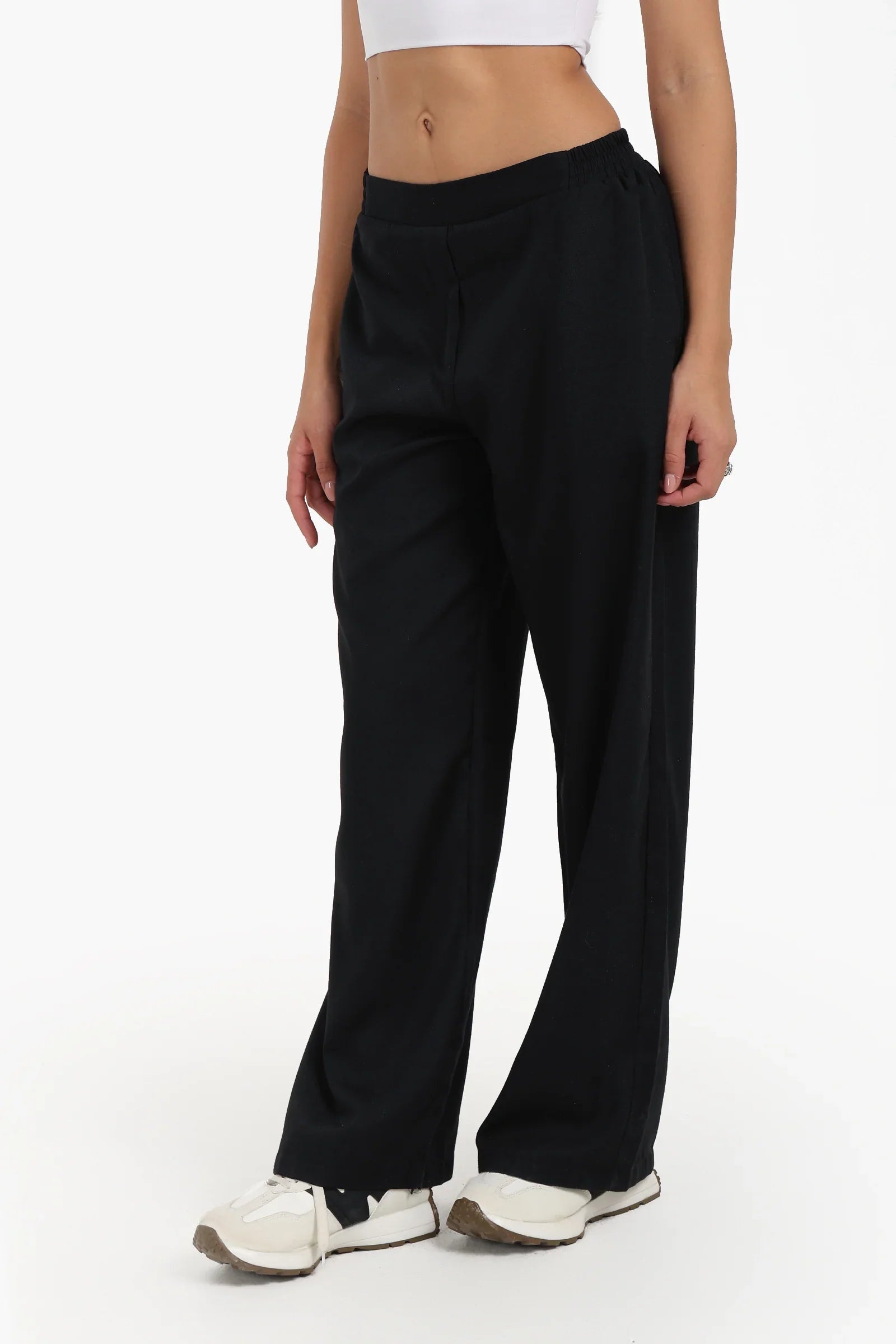 • بنطال بخصر عالي و بقصة ساق واسعة