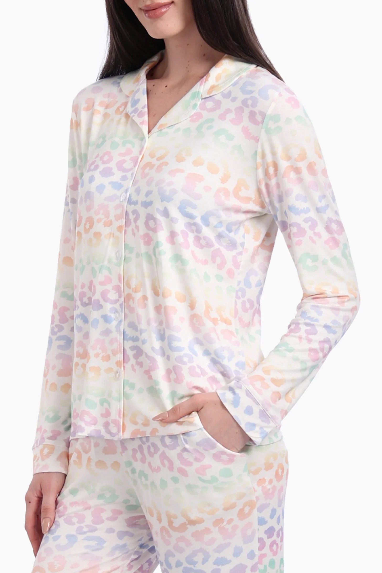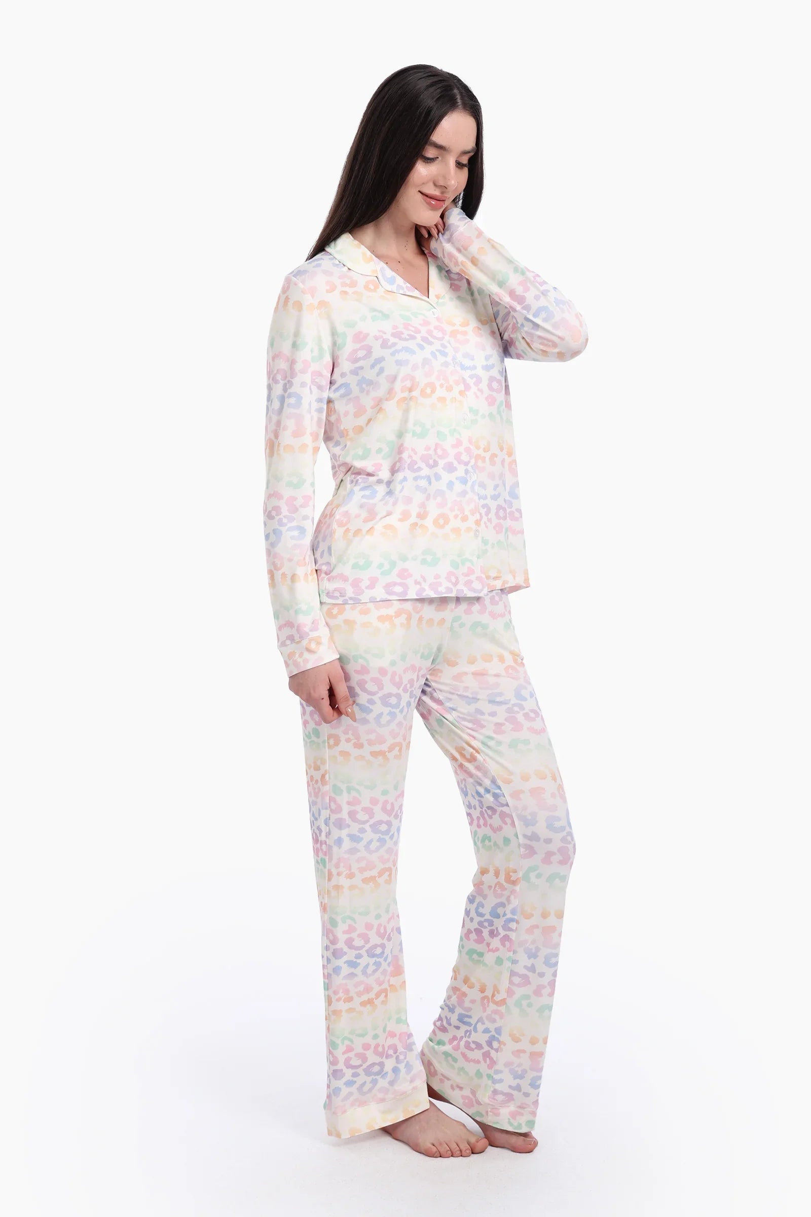 أضف لمسةً مرحةً إلى ملابس نومك مع طقم البيجاما هذا، المُصمّم بنقشة حيوانات ملونة، والمصنوع من قطن يسمح بمرور الهواء لراحةٍ طوال الليل. يتميز الجزء العلوي بفتحة رقبة على شكل حرف V كلاسيكية مع ياقة مدببة، وأزرار إغلاق كاملة، وأكمام طويلة، ليجمع بين الأناقة الخالدة والنقشة المرحة والحيوية. يأتي السروال المطابق بقصّة مستقيمة وتصميم كامل الطول، مع حزام خصر مطاطي وجيوب جانبية لسهولة الارتداء ووظائف إضافية. مثالي لأمسيات دافئة في المنزل أو صباحات هادئة في المنزل.