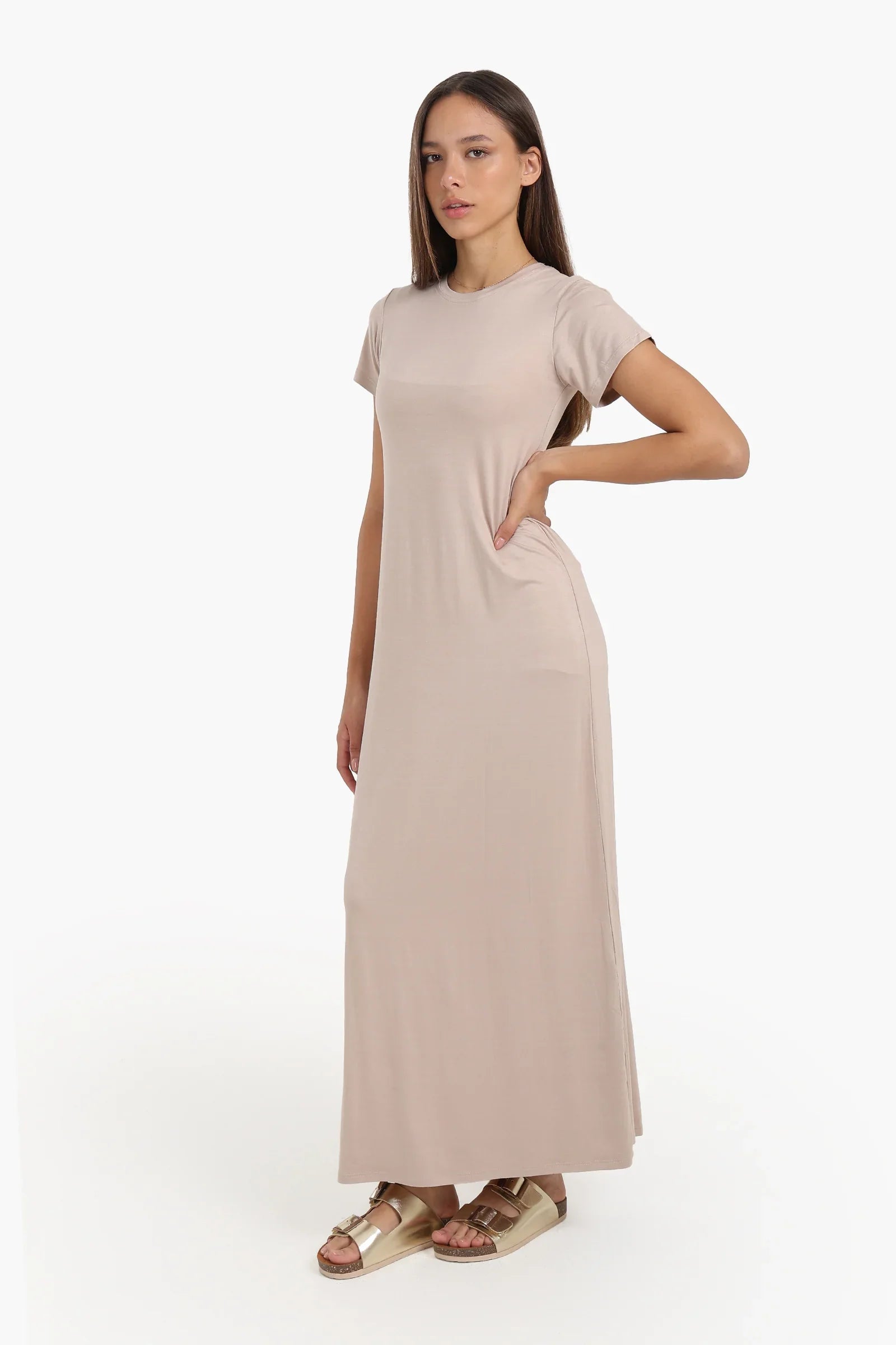 Upgrade your wardrobe with this classic, solid-style dress, designed for comfort and style. Made from soft, breathable viscose, this dress features a flattering, regular fit that drapes smoothly, making it perfect for any occasion. Its midi length adds a touch of sophistication, while the round neck and short sleeves give it unparalleled elegance. Easy to dress up and go, this versatile dress pairs well with any accessory and can be styled with a variety of formal or casual looks.
