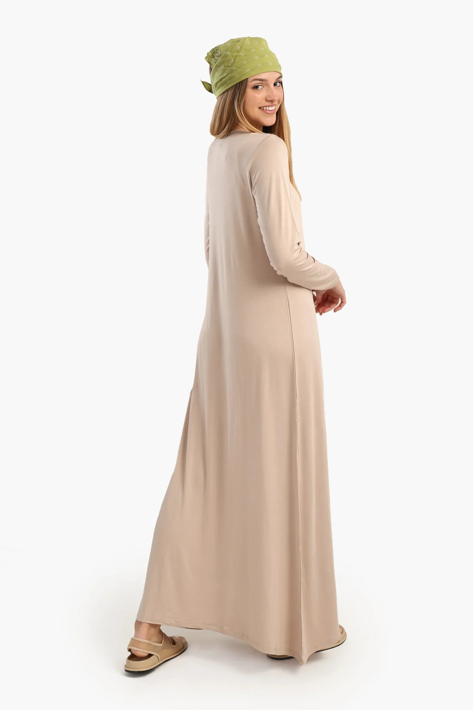 This soft viscose maxi dress is the perfect blend of comfort and elegance. With its regular fit and consistent pattern, it offers a classic look that flatters a variety of body shapes. The round neckline creates a classic look, while the long sleeves add a touch of warmth and sophistication, making it suitable for a variety of occasions. Designed for easy dressing, this easy-to-wear dress is a wardrobe staple.