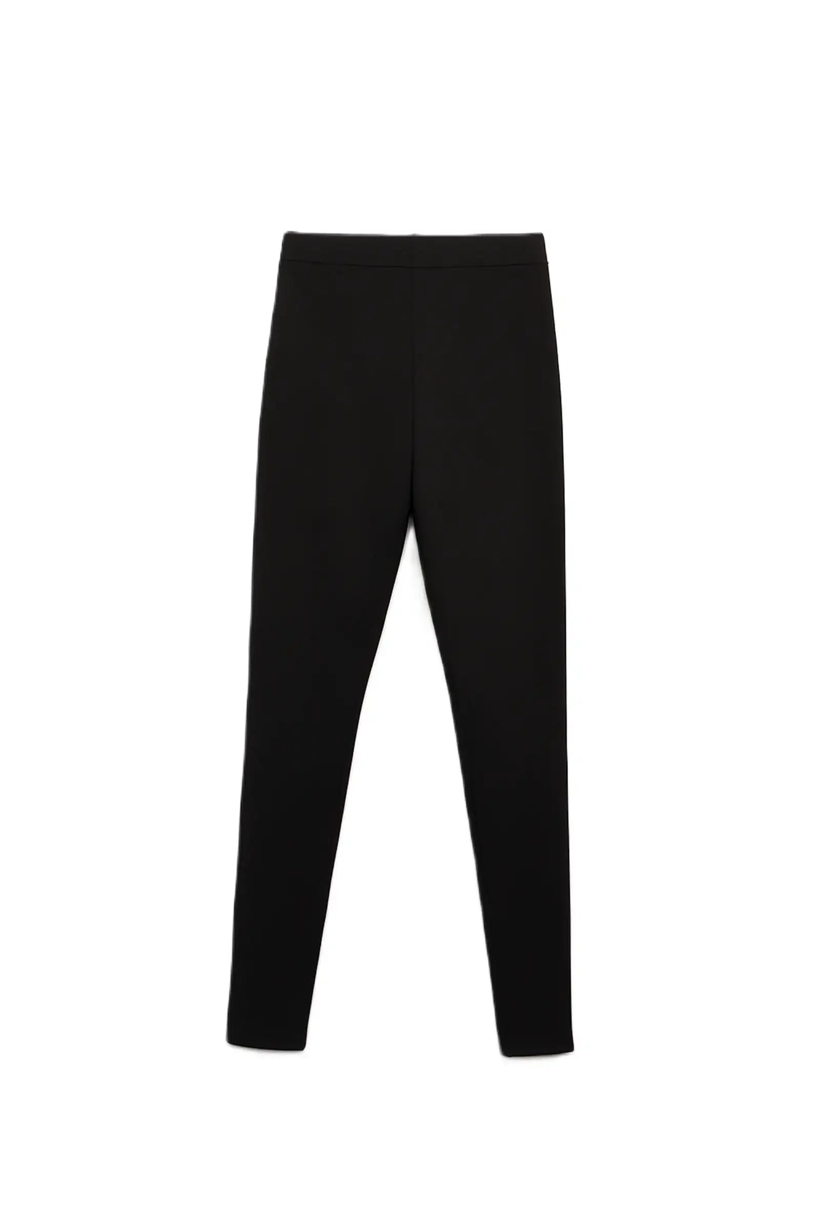These long leggings are made from soft, stretchy jersey fabric with a slim fit that flatters your figure. They feature a high waist and elastic waistband for all-day comfort and support. The simple design maintains a stylish and versatile look, while the zipper detail at the hem adds a modern, sporty touch. The easy-to-wear design makes them perfect for effortless everyday wear.