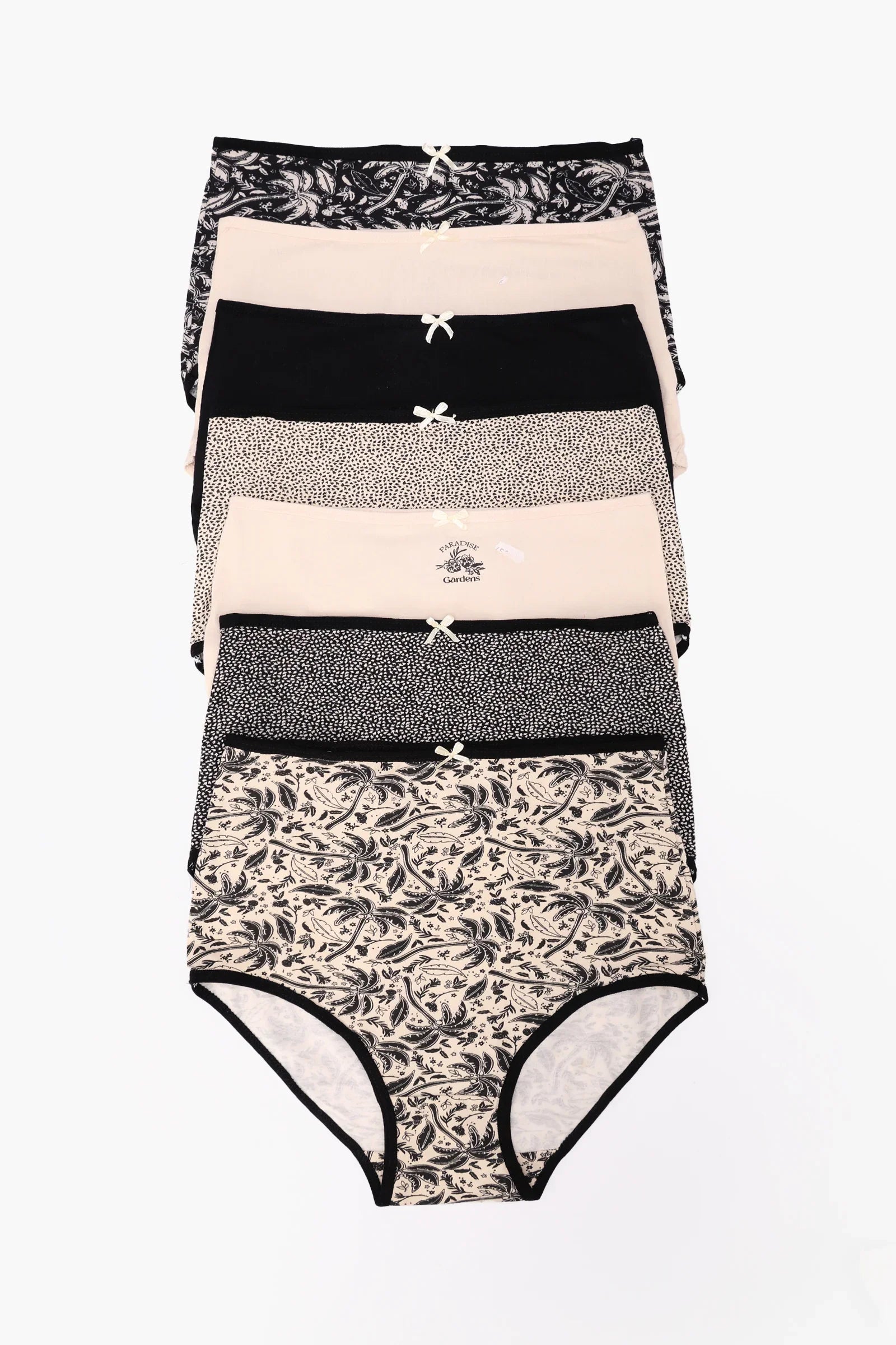 • عبوة من ٧ سراويل داخلية بخصر عالي ملونة