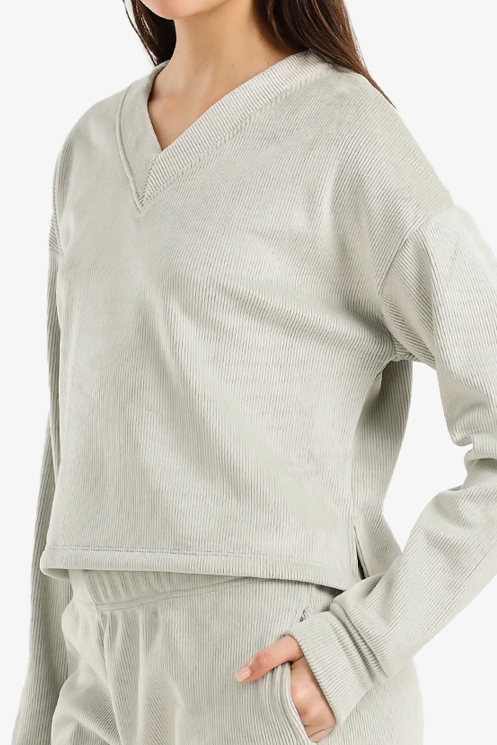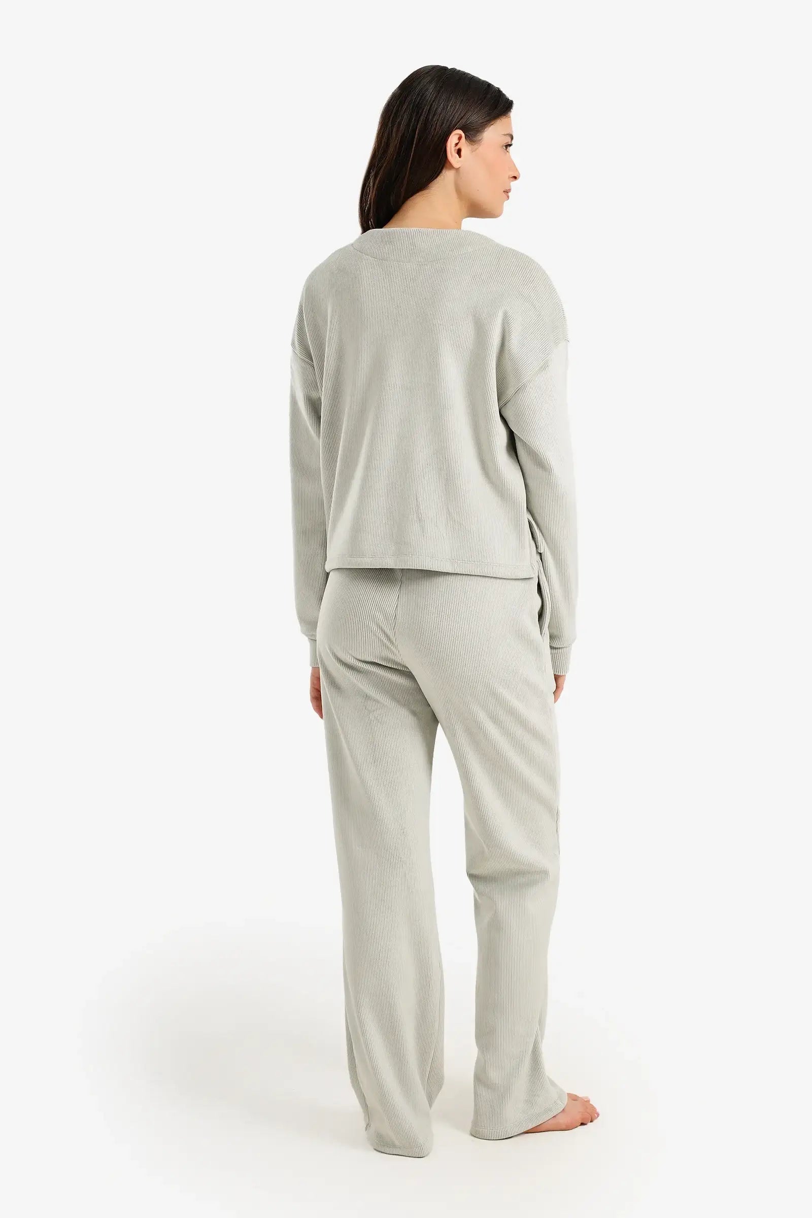 • طقم بيجامة مخملية مضلعة