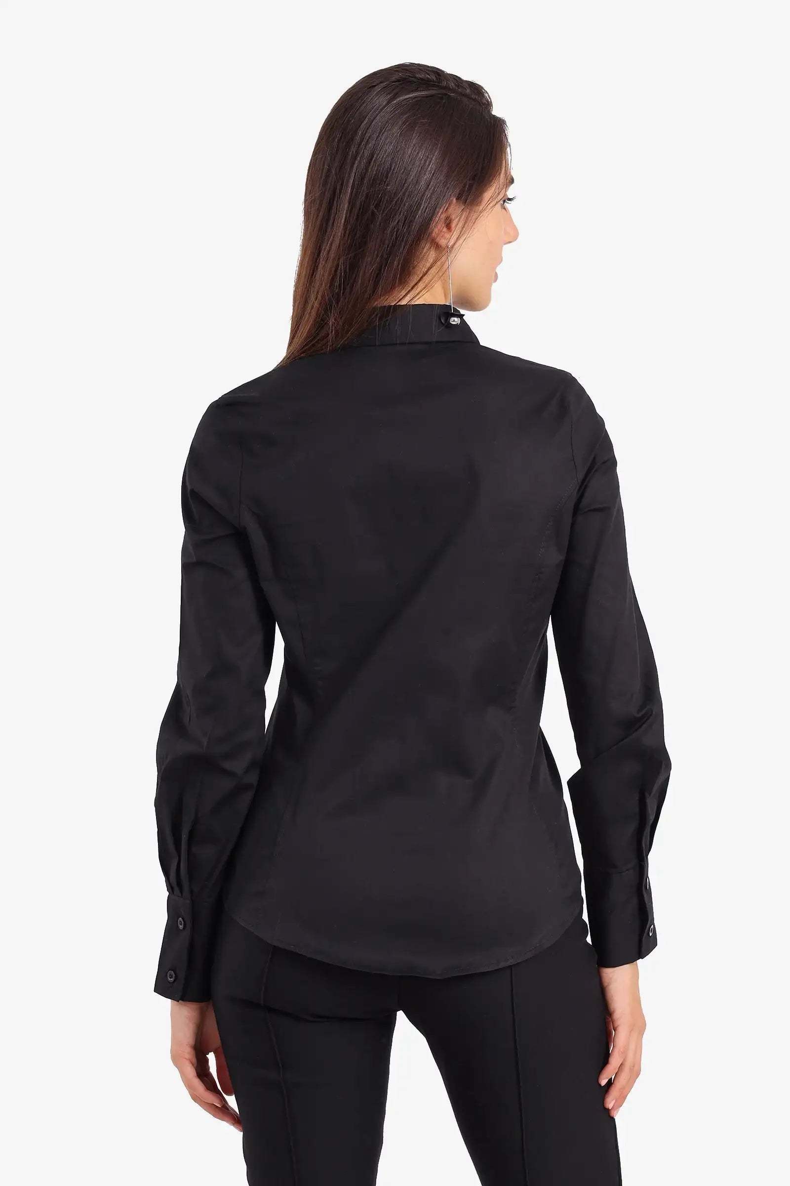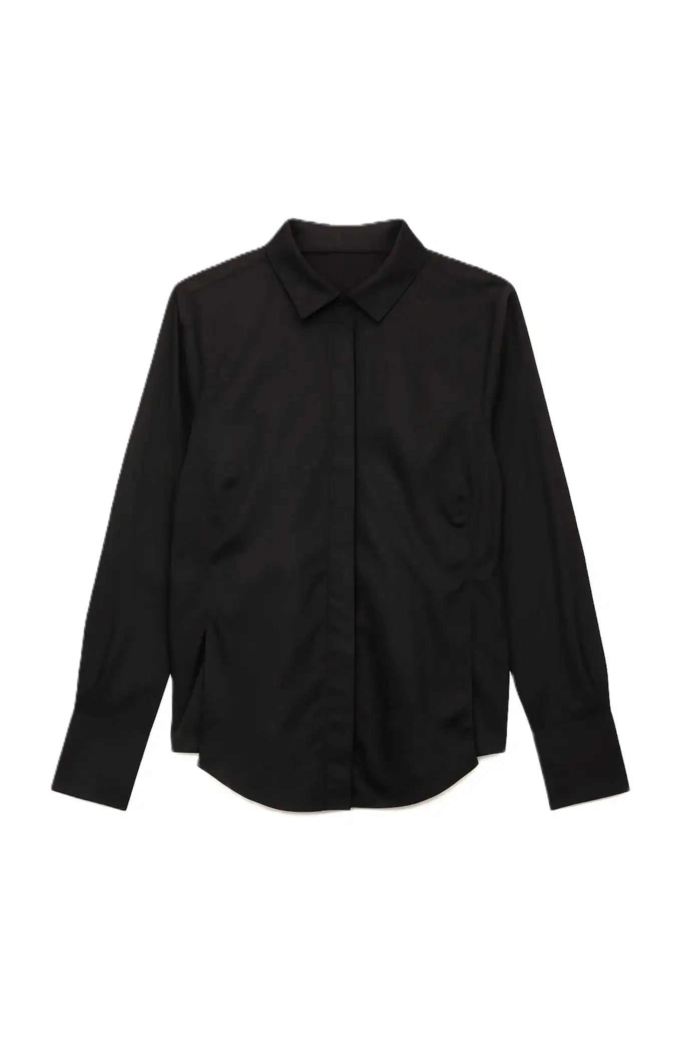 يأتي هذا القميص القطني بقصّة عادية بنقشة سادة أنيقة، وياقة مطوية وأكمام طويلة لإطلالة كلاسيكية. يُضفي إغلاق الأزرار مع فتحة مخفية لمسةً أنيقة، بينما تُضفي الحافة غير المتماثلة لمسةً عصرية.