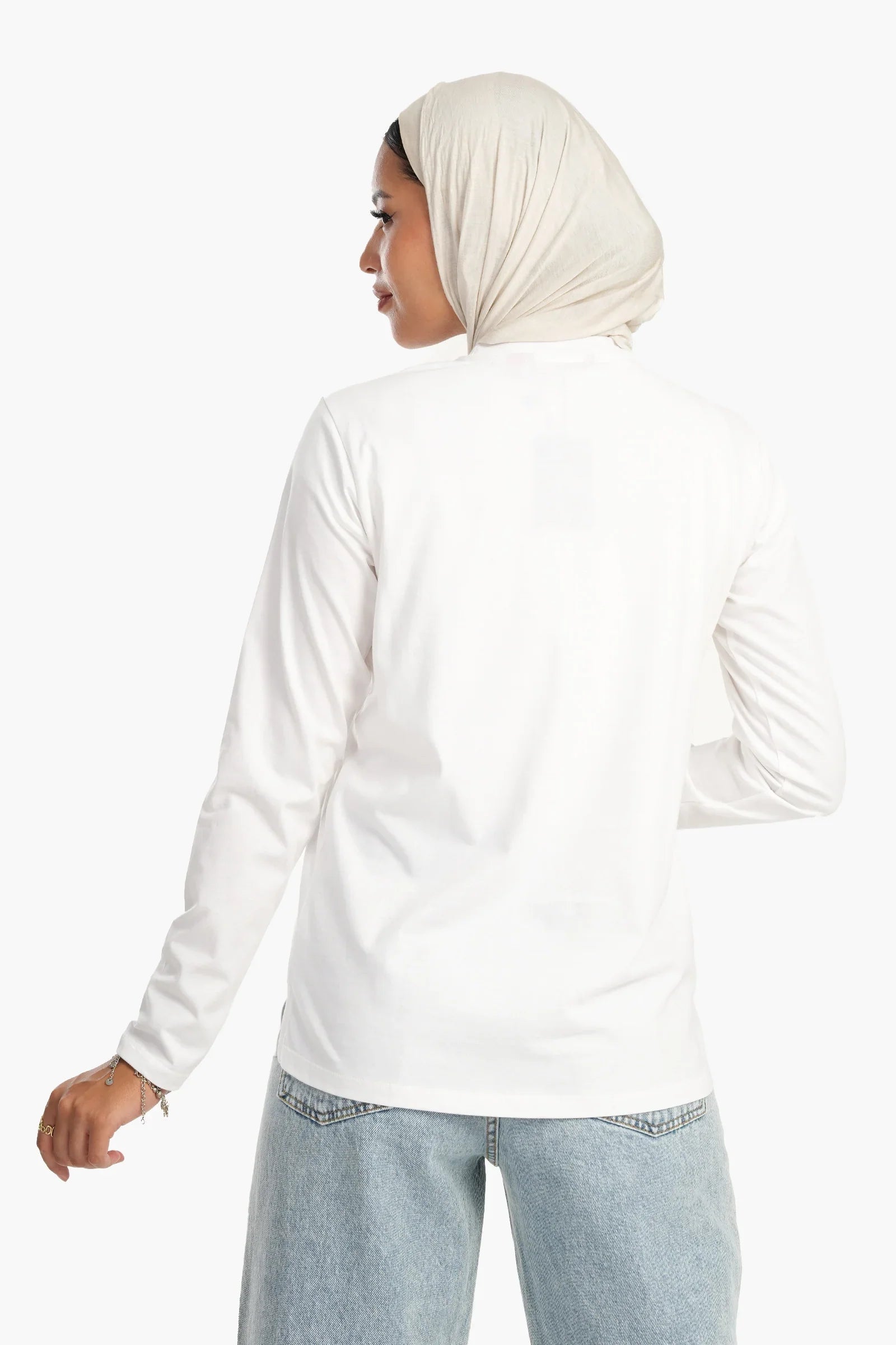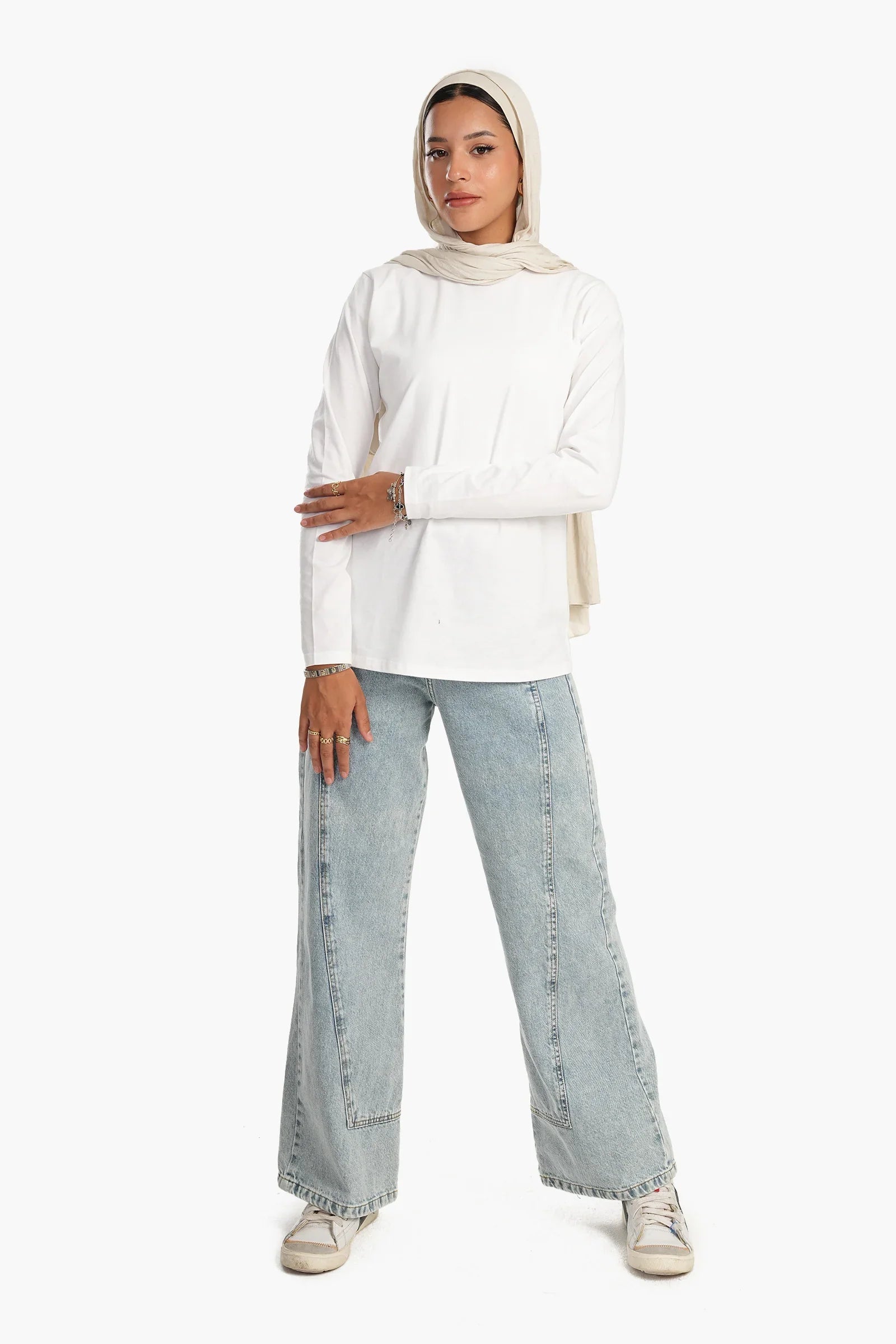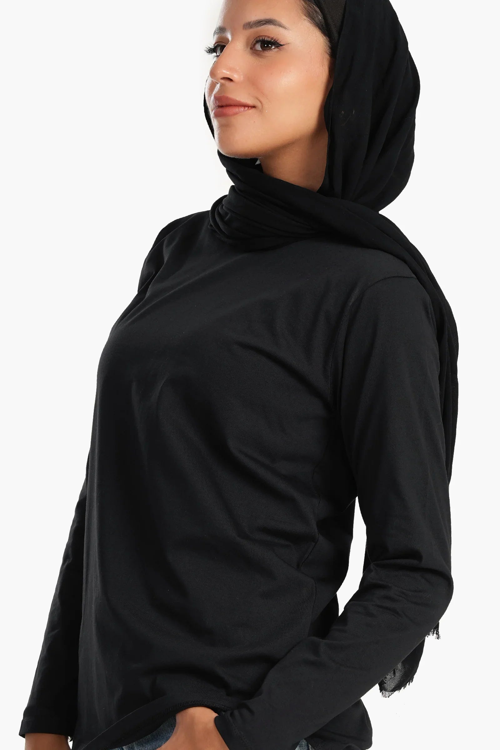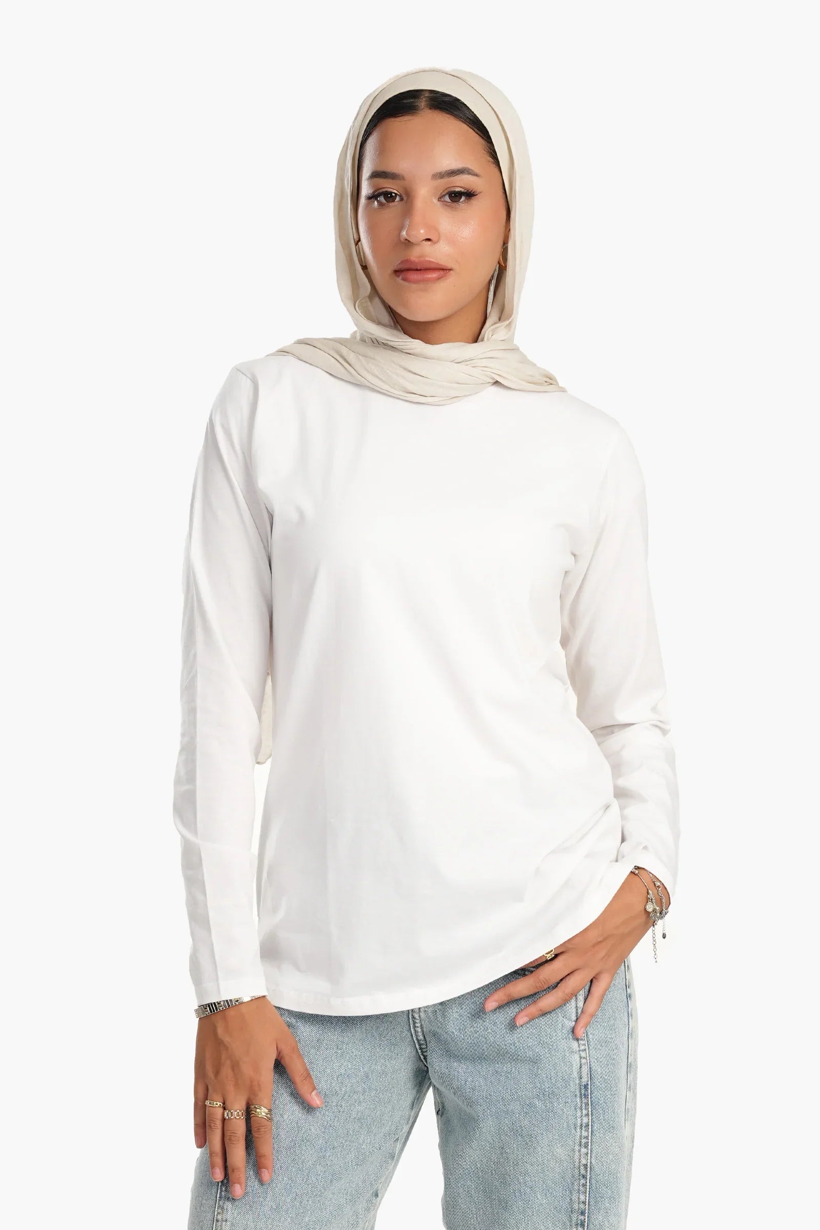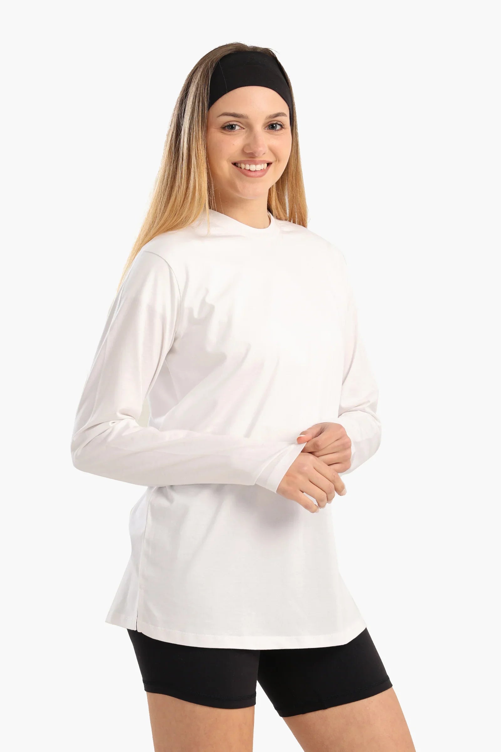 جددي أساسيات خزانة ملابسك مع هذا التيشيرت القطني اليومي، المصمم ليمنحكِ الراحة والأناقة. مصنوع من القطن الناعم، يتميز بقصّة عادية ونقشة سادة، مما يجعله إضافةً متعددة الاستخدامات لأي إطلالة. يوفر الياقة المستديرة الكلاسيكية والأكمام الطويلة تغطية كاملة، بينما تضفي الحافة المستقيمة والفتحات الجانبية الأنيقة لمسةً عصرية. هذا التيشيرت سهل الارتداء مثالي للارتداء مع طبقات أخرى أو بمفرده لإطلالة أنيقة وعصرية.
