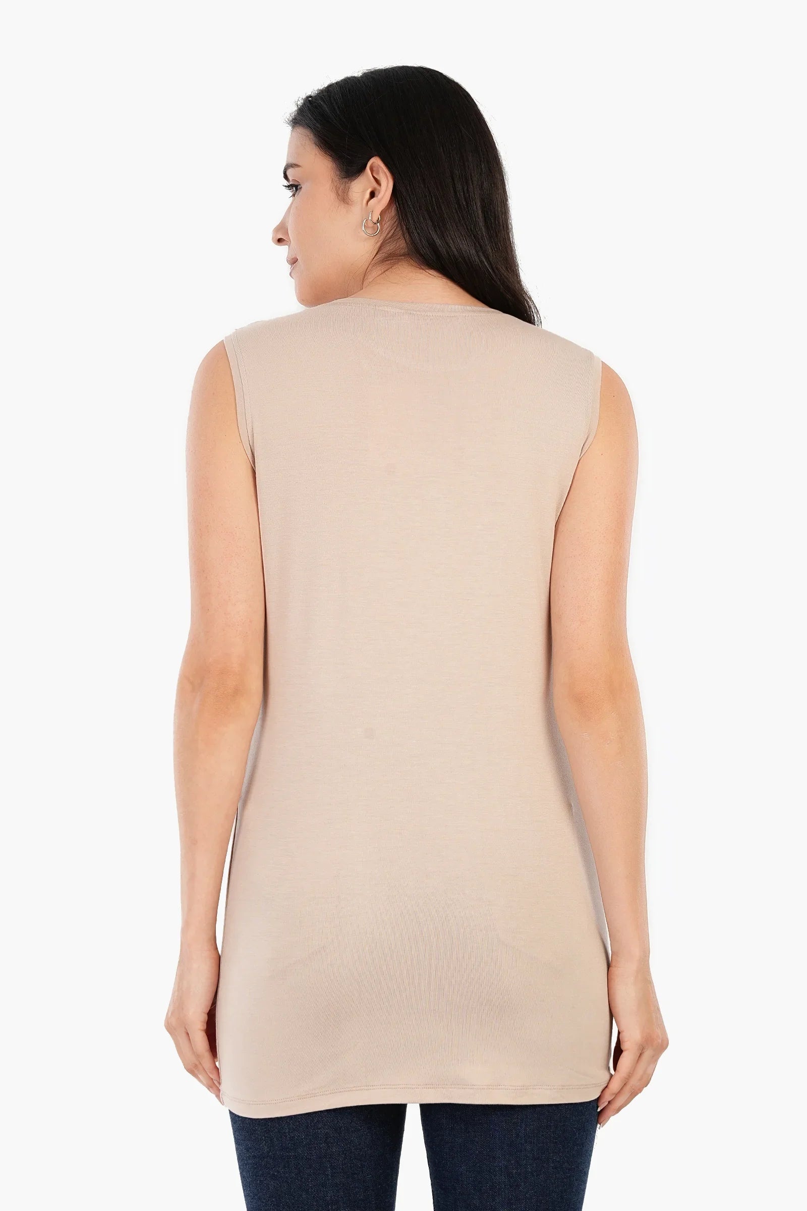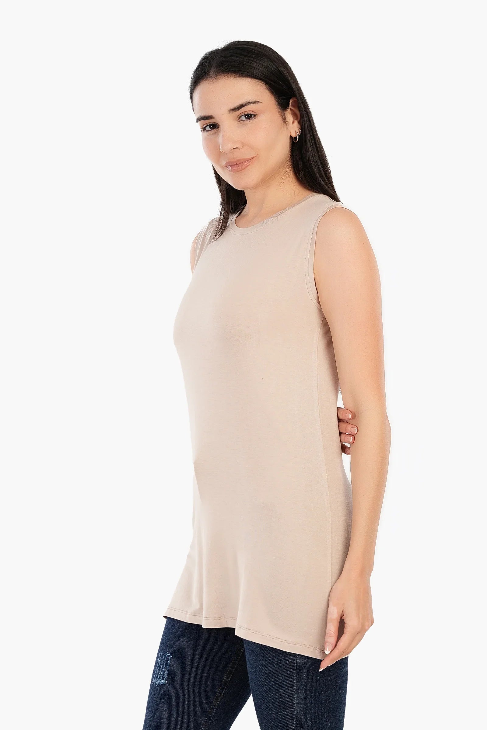 حافظي على أناقتكِ وراحتكِ مع هذا التي شيرت الطويل المصنوع من الفيسكوز الناعم وخفيف الوزن. يتميز هذا التيشيرت بنقش سادة كلاسيكي، وقصة عادية توفر لكِ الراحة والجاذبية. تصميمه الكلاسيكي بياقة دائرية وأكمام بدون أكمام يجعله قطعة متعددة الاستخدامات، سواءً للارتداء فوق ملابس أخرى أو بمفرده في الأيام الدافئة. بفضل حاشية مستقيمة وحذاء سهل الارتداء، يضمن لكِ هذا التي شيرت الطويل راحةً فائقة وسهولة في الارتداء، مما يجعله مثاليًا للنزهات غير الرسمية أو أيام الاسترخاء في المنزل. بسيط وأنيق في آنٍ واحد، يُعد هذا التي شيرت الطويل قطعة أساسية في خزانة ملابسكِ لإطلالة أنيقة دون عناء.